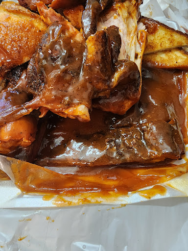 Driving by this place and seeing the outside is what initially intrigued me. Now normally, whole in the wall, off the beaten path places heighten my interest, but after trying this food today, I now know why I always drove past this place. When I first opened the food, it didn't smell 100% fresh, and then my order was wrong. I ordered the rib, chicken, and chop combo with green beans and okra. Instead of receiving green beans, I got a double portion of baked beans. When I opened the container, the bbq sauce was spilling out, so I already knew everything was oversauced to cover up the boo boo inside. That bbq sauce was not only off-putting but 1 whiff, and I was like uh huh I'm not eating that. The chicken was bland and had absolutely no seasoning. The ribs were hard, and the smokiness on it was overpowering. The chopped pork wasn't fresh! Not only was it inedible, but it had a sordid ordor coming from the container. 1 teeny tiny bite of everything gave me an itchy throat and upset stomach, so you can imagine I will be in the bathroom later. I ended up donating the food to my favorite place, the trash! I threw out everything! If you're thinking about coming here, I would stay clear and...