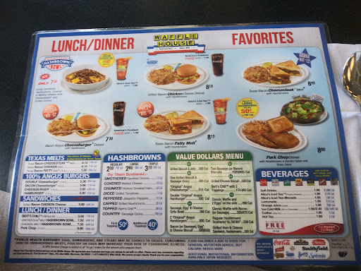 Ā Ā Ā Read moreThis was the second Waffle House I went to, the first one I walked out of. The first one, store number 923353, started bad as soon as I walked in. No greeting, table was disgusting, and the floor needed attention also. After being ignored for a couple of minutes, I walked out! Found another Waffle House just a couple of miles away. Completely different experience. Was greeted as soon as I walked in; the waitress was cheerful and friendly. The table was clean and ready for me. Likewise so was the floor. I commented on my first experience with the folks here and they kinda acknowledged that other store sometimes has 'issues'. Right, nuff said. Folks here we're great and accommodating. Food was cooked as requested, even the bacon was just perfect as I prefer it to be chewy, NOT crispy. Seems like I have problems getting bacon cooked as I ask for. And, the hash browns were cooked crispy; could hold it like a potato chip. That was great. So pay attention and avoid that first...