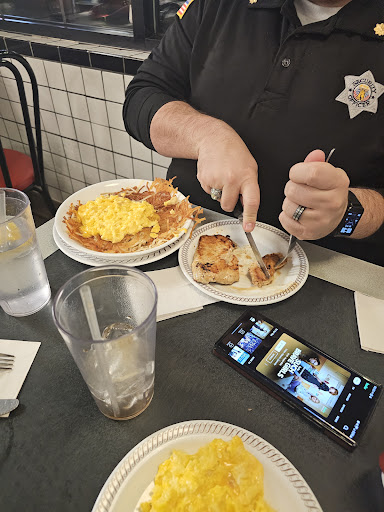 This waffle house was not great. The servers were very friendly and sweet, but they kept messing up. We were there at 2am and there was basically no one there yet it took ages to get the food. And when we got the bacon it looked like a mass of burnt meat so we sent it back. We were very nice about it, it happens and we weren't mad. But the person on the grill started throwing a fit about it and then spent like the next hour complaining about the bacon situation. And the hash browns didn't have onions on it like we ordered. We also ordered white gravy and the waiter went to the next table with our friends and they order the gravy as well but he told them they were out but he didn't tell us that when we ordered it. So we called him over and asked about the gravy to confirm that it wasn't available and substituted it for chilly. We could tell the waiter was new though, he was still learning the menu and was still a bit rough at things. Completely understandable and we hated making thing harder for him since he was quite nice. But the whole experience was clumsy and seemed no one on shift was experienced to help direct things. And the grill guy throwing a fit was just immature. But the saving grace at the end was watching a female waitress see a customer left their waffle they were talking to go and she seemed lost on what to do. She checked out the window, grabbed the waffle and went out in the freezing cold night trying to find the guy. She didn't find him, but most wouldn't go through that effort. It was very nice. Everyone seemed genuinely friendly except the grill guy still going on about bacon by the time we felt. Legend has it, he is still going on...