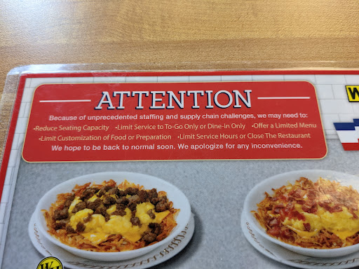Read moreWorse experience at a Waffle House ever! First off, I ordered online 15 minutes before my break, got there and they told me they didnât receive an online order when in fact they did. They just didnât check for it. Ok so they gave me a complementary OJ. I ordered a Cheesesteak Melt the lady rushed making my food and the cheese wasnât even melted so I asked if she could put it back on the grill she didnât they handed my food to me and I saw there wasnât any cheese in my grits like I had ordered so she grabbed the cheese with her bare hands and put it in my grits. Iâm calling in to report the rest of the story. Itâs too much to type ....