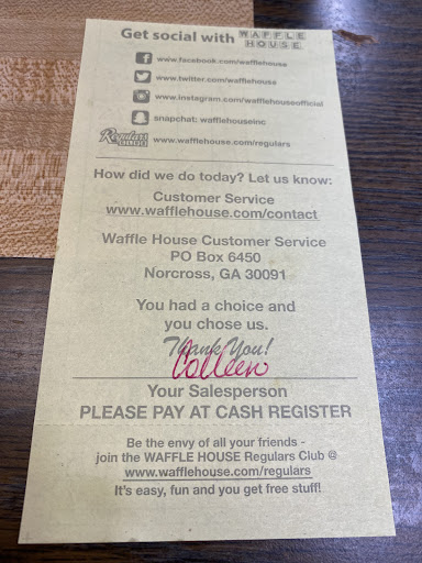 From the moment I stepped into the warmly lit interiors of the Waffle House, Colleen made me feel welcome with her infectious smile and effervescent personality. Her service was more than just professional; it was genuine. She was attentive, ensuring that all my needs were catered to, and was quick to provide recommendations from the menu based on my preferences.