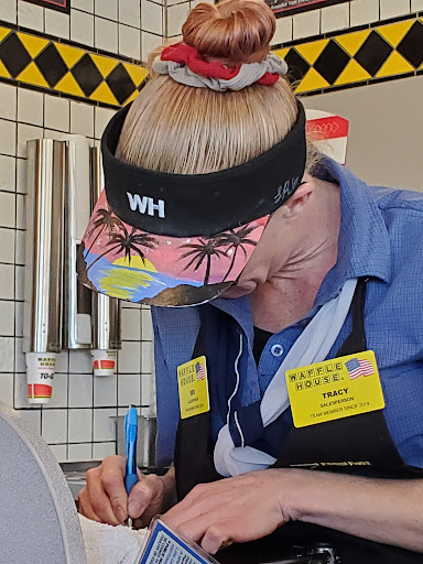 Came into store sat down at the bar. Waitress says here or takeout? I said for here. She takes my order then delivers other customers food to table. She then tells the cook what I ordered she did not call it out like she was suppose to. Well I ordered sweet tea to drink she brings it with little ice in it. Well I waited for my food it came. My grits was like hard balls the size of golf balls in them with the hard thin film all mixed in them. I ordered a Texas bacon chicken cheese deluxe plate I did not receive lettuce or tomato. I asked for it she brought me it was at least 5 big pieces rounded over a piece of tomato that was sliced so thick and looked like it had been sitting there in the heat for hours. Well I had to ask for jelly. I told her about my grits and she responded with âwell what do you want some hashbrownsâ? I said âno mam I want grits this is the Waffle House yâall should have some fresh gritsâ. She proceeds over to the cook in the corner booth and tells him about my grits. He comes over to the grits and adds hot water from the coffee maker which is fine he smoothed them out takes them to the waitress and asked her if she thought they was alright and hands them to me and apologizes for them. By this time Iâm asking cook who manager of store is. The waitress had disappeared. He told me so when she shows back up I had to ask for more tea so she walks over picks up my glass takes it to the tea urn and fills it slap to the top with room temperature tea and no ice. I was in disbelief at this point. A customer beside me asks the waitress says â yâall must have been busy tonightâ. She replied with âoh no not at allâ. I thought to myself well from the looks of the restaurant is sure looks like they had been busy. I grabbed my ticket it was $21.75 so I left $22.00 on the ticket. She saw me getting up and said you have a good night . I told her I said yes mam absolutely and so do you an I walked out. This is the worst service I have ever had at this place. Oh I asked her name because I have every intention on calling the manager Ms. Tosha in the morning. Look Tiffany if you want to make good money you have to give good service and you also have to be aware of what you are serving and make sure it is right before you deliver it to the table. You was not busy at all an you should have gotten a at least a $10 tip from me bc I love to tip my servers well when I go out bc I used to work at Waffle House too an Iâm pretty sure you arenât making any money if you treat all your customers as you did me. Iâm hoping you take something from this to improve in your serving skills and do not take it as a bad thing. Iâm not meaning it to be bad I want you to learn from this. I may look like I donât have any money but you can not always judge a book by its cover babygirl bc Iâm a very good tipper. I used to wait tables myself. ...