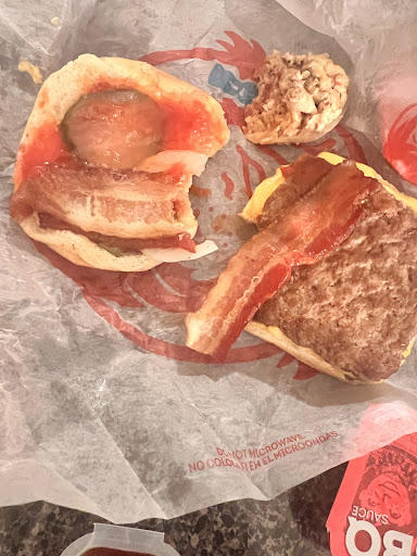 Read moreI drove to Wendy’s last night before 10:00pm . All of the lights was off . I passed it looking for it. I drive in and it looked close. The menu light the Wendy’s sign all was off as if the staff did not want anymore customers to come in. Anywho I get to the speaker and they are open I’m like ok cool. I order my food . Pay for it and the young lady that was taking care of the orders said they was making me some fresh fries. So I pull up to the front door waiting on my fresh hot fries to come out with my order. So she comes out with my bags of food cool. I didn’t check it before I left I knew I should’ve but anyway. I get home not even 3 mins away and my food is cold everything my fries was over cooked and still cold my son nuggets was cold cold. I ordered a $7 Biggie bag .I go to bite in my bacon double burger and it tasted awful like it was expired meat disgusting I almost threw up! I went and drove back up there and tell them how nasty the food was the manger said she will make the order herself. She apologized she will redo my whole order for me. Ok cool. I check it fries are fresh and nuggets. Boom get home bite into my burger and it had the same taste as the last one. I take off the top bun to see what’s that nasty taste. I taste the meat and it didn’t taste nasty. I look at my bacon and it looks like it was frost bitten. It was half cook and it smelled horrible . It was old expired bacon. As you can see in the picture I posted the bacon is light and bumped up like it’s frost bitten and it was still cooked. It was old expired bacon. Very disappointed. I just moved in the area and I never in my life had nasty Wendy’s I love me some Wendy’s ! I will not be returning back I will be reporting to the...