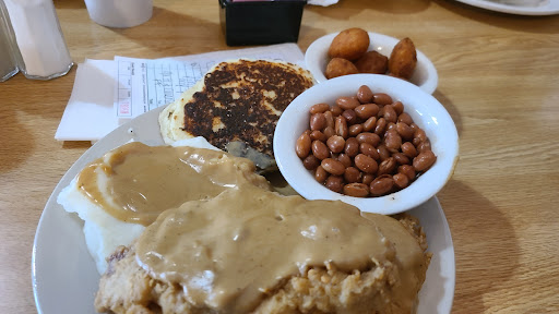 Read moreCool little " hole in wall " country restaurant. The staff was great and the food came out fast. I ordered the fried porkchops , cornbread fritter , pinto's , mac n cheese bites & mashed potatoes with brown gravy for chops & potatoes . The porkchops were huge . Two big center cut thick chops from the tenderloin breaded and golden fried. They were good. The pinto's were beyond a doubt canned with absolutely no flavor other than plain " out of the can " flavor they have. The fritter also didn't have much flavor . Mash potatoes with brown gravy was good probably the gravy. Those mac n cheese bites were just not that good . I only ate one. Most everyone in the place was eating their hamburgers and there was one with a BLT I believe. Cool place , food was half and half but let me say my standards are high as I cook a lot . So most of the people coming in their may not even know the difference as I see it has...