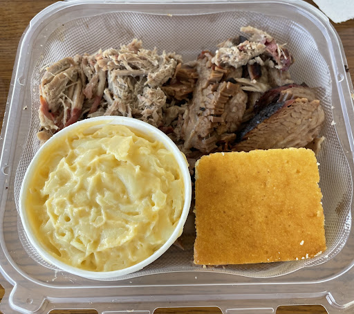 I got the 2 meat combo - pulled pork and brisket w/ Mac n cheese and cornbread. The brisket fell apart and was good (a little fatty). The pulled pork was dry. The Mac and cheese was bland. The cornbread was good. The portions were small for a 2 meat plate.