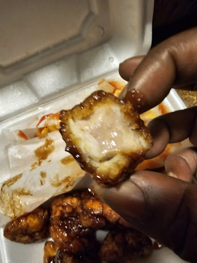So, bear with me as I have never posted a review like this before. My daughter's and I decided to order from 101 Wings on Memorial Dr after we learned a different restaurant was closed. I ordered the Honey Barbecue Boneless Wings. After eating. Y fries, I took a bite of the Wings. I couldn't believe what I saw, so I had both of them confirm that the chicken was in deed PINK in the middle. Now, idk about anyone else, but there was no way I was going to eat anymore because, well, I had no desire to get salmonella poisoning. Seeing that it was 9:36 pm, I knew the restaurant was closed, but there would still be someone there, as we only live 5 minutes away. A woman answered, I said, "I know you all are closed, but we just left the store, and after taking a bite of the chicken, it's pink in the middle."" So I'm going to take pictures and I'll come up there tomorrow to get my money back. " She interrupted me and said no, she would fix me another plate. I told her that I could not eat anything from there at this point. She started yelling and said I could NOT get a refund!! I informed her that I would have to file a complaint with the Department of Health. She said, "Call them!!" and she hung up!! My daughter called her and I'm not sure what was said, the result was, she agreed to give me the refund. When I arrived at the restaurant, she asked me to show her the food. She then says that she can't give me the refund because I ate the fries. I again insisted on the refund because of the chicken! I showed her the chicken, and she told me, "All you had to do was eat around it!" At this point, I'm done. I told her I wasn't leaving without my refund. She slammed down $10, and I asked to see my receipt. It showed $10.79. In my frustration and anger. I didn't read the receipt. She ultimately gave me $11, I learned that she withheld the ACTUAL amount, which was $13.29!