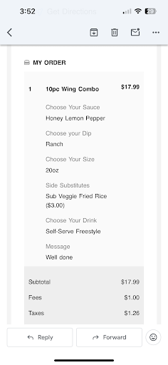 Let's just say I will not be returning. I am VERY big on customer service & you can tell the young kids they hire here just don't care. I ordered 6 piece xx hot wings online. In the special requests section, I meant to type "PLEASE DO NOT DRENCH WINGS", however autocorrect must've switched the word 'drench' to 'French'. Okay, I understand that's a mistake on my part, however, one of the things I would've done is 1. Used my context clues since there were no fries ordered 2. Called the customer to figure out what was meant. When I arrive to pick up my order, a sweet girl asks what l meant. I told her, she showed me the food and asked if I considered them drenched. I politely said "yes I do, it doesn't even look extra crispy to be honest. Are they able to remake it" She calls over a rude, boy who must've just been ready to go home by the name of jacob, and asked if they could remake them. He comes over with the worst attitude, "THOSE ARE NOT EVEN DRENCHED" I said, "how are you going to tell the customer what they considered drenched or better yet soaked in Xxhot sauce?"