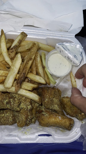 The wings and fries were good. Not small or too big, just a good size. Nothing to brag about, but definitely worth ordering again. But BA-BY, that rice and fish was everything. I'm a sauce gal. I like to put sauce on everything, but you don't even need it for the fish. It was seasoned VERY well. The vegetable rice had a lot of broccoli, which I loved. The only thing I didn't care for was the hush puppy. They are tiny and weren't that great, but the fish made up for it.