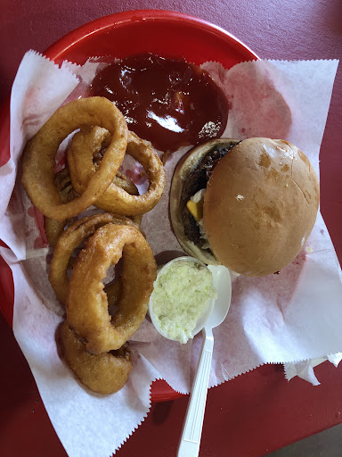 Read moreParking: I'm not even sure if there's an actual parking lot or an unmarked area that happens to be in front of their building. Ordering: two giant monitors with a very basic selection which is fine but of the sides listed, there is a hand written sign taped to the register stating half of them are no longer served. Food: The turkey burger tasted like a frozen grocery store patty that was microwaved because the center still had frozen crystals and it was rubbery. My burger was just ok: too much bun and no tomato (I love a cold tomato on a hot burger...I asked for "all the way" minus onion) so I thought well maybe they were out but the guy at a table next to us had a tomato. Only two kinds of cheese to pick from: American and Swiss so I skipped that totally. I asked for unsweet tea got sweet tea...not a big deal but good thing I'm not diabetic.