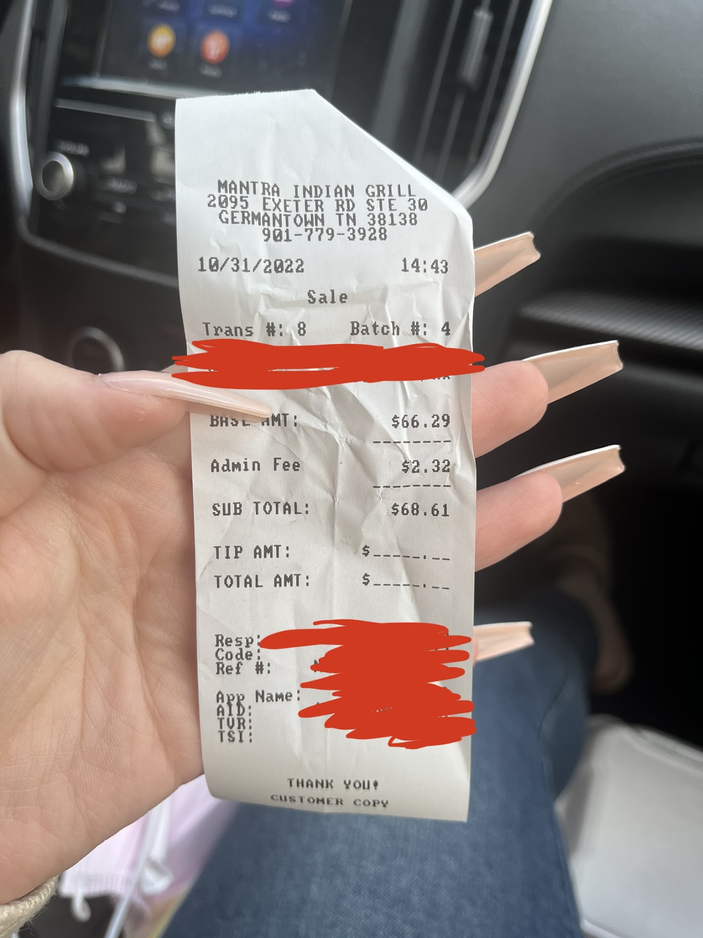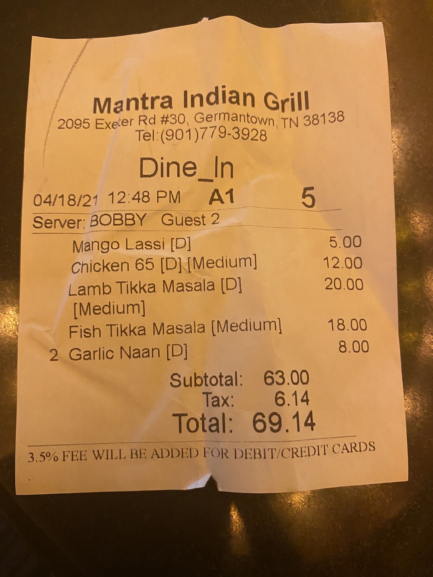 Read moreAfter my graduation we searched for Indian restaurant and this restaurant pop up so read the reviews before we go to dine in and I really regret it. I don’t recommend this restaurant at all. I have ate couple of Indian restaurant in Memphis but this restaurant is the worst and very poor, I order garlic naan bread and Salmon Tikka masala with expectation of an authentic Indian cousin but this restaurant far from it. The Salmon Tikka Masala was horrible it doesn’t taste good and it was very watery only thing that you will taste is the masala spicy and the salmon was fishy and naan bread they must remove it from the menu because it was an insult and mockery for Indian cousin, we called the server and we asked him to call the manager unfortunately he told us he is the manager and this is the way chef cook also we don’t put salt on any of the dishes and this their standard and I asked him to take food back to give us the bill. Over all my experience...