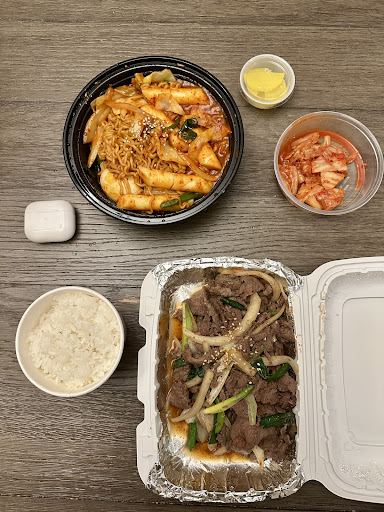 Pretty good Korean style place. HUGEEE portions and HUGEEE menu of Korean classics to choose from. We got beef bulgogi and spicy cod soup. Huge mound of piping hot beef with rice and some small sides. Fish soup had huge whole slices of fish in it! At first I was unsure of the cost but you definitely get what you pay for. I was very full. Flavor wise it was all quite good! You can tell the food was made to order and not just reheated. Update: Pictures when we came back for takeout for bulgogi and Tteok-bokki with noodles. Beef still excellent and the noodle dish wowww so soft so good.
