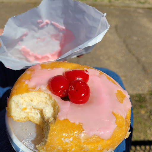 At $3.25 for one donut, the least you could do is pack them in a small box. This donut was little more than a grocery store glaze with pink frosting and 3 cherries in the center. Half the frosting stuck to the inside of the bag. The cake itself seemed somewhat old. And the glaze was sweating off. For a couple dollars more, I could have got a dozen Krispy Kreme.