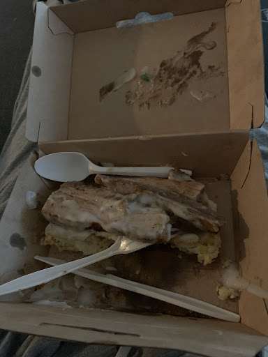 I also got a side of cheesy grits. I wonder if they use powdered cheese? There was some kind of powder consistency/texture in the mix. Also, thank God there was salt and pepper packets provided with the plastic utensil. The paste definitely needed the kick.
