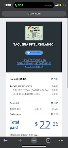 El Chilango Mexican Grill in Germantown is a hidden gem for Mexican cuisine enthusiasts. I had the pleasure of dining there recently and was thoroughly impressed by the quality and flavors of their dishes. To start, I tried their Taco Sodet, a delightful twist on traditional tacos. The combination of crispy tortillas, flavorful meat, and fresh toppings created a mouthwatering experience. Next, I indulged in their Carne Asada, which was cooked to perfection—tender, juicy, and bursting with flavor. The Tripa and Lengua tacos were also exceptional, showcasing the chef's skill in preparing offal meats. What truly stood out to me was their Tamarind Juice. It was a refreshing and tangy drink that served as the perfect foil to the spiciness of the dishes. The balance of flavors in each sip was truly remarkable. Aside from the food, the ambiance of El Chilango Mexican Grill is cozy and inviting. The staff is friendly and attentive, ensuring that every diner has a pleasant experience. In conclusion, El Chilango Mexican Grill is a must-visit for anyone craving authentic Mexican flavors in Germantown. The combination of delicious food, refreshing drinks, and welcoming atmosphere makes it a standout dining destination.
