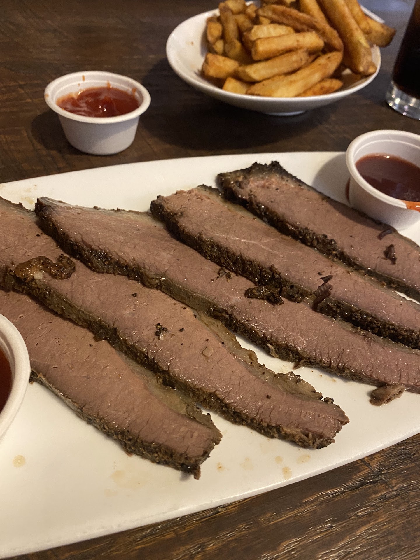 My wife got the pulled pork and said all she could taste was pepper. We got a side of fries and they were the best part but their āsecret seasoningā had no taste and I question that they were actually hand cut there. Only 1 ketchup cup, only 2 bbq cups, no salt at the tables (I didnāt need pepper!), no straws given out. Kind of stingy for how much everything cost ($43 for brisket, coke, fries and pork sandwich).