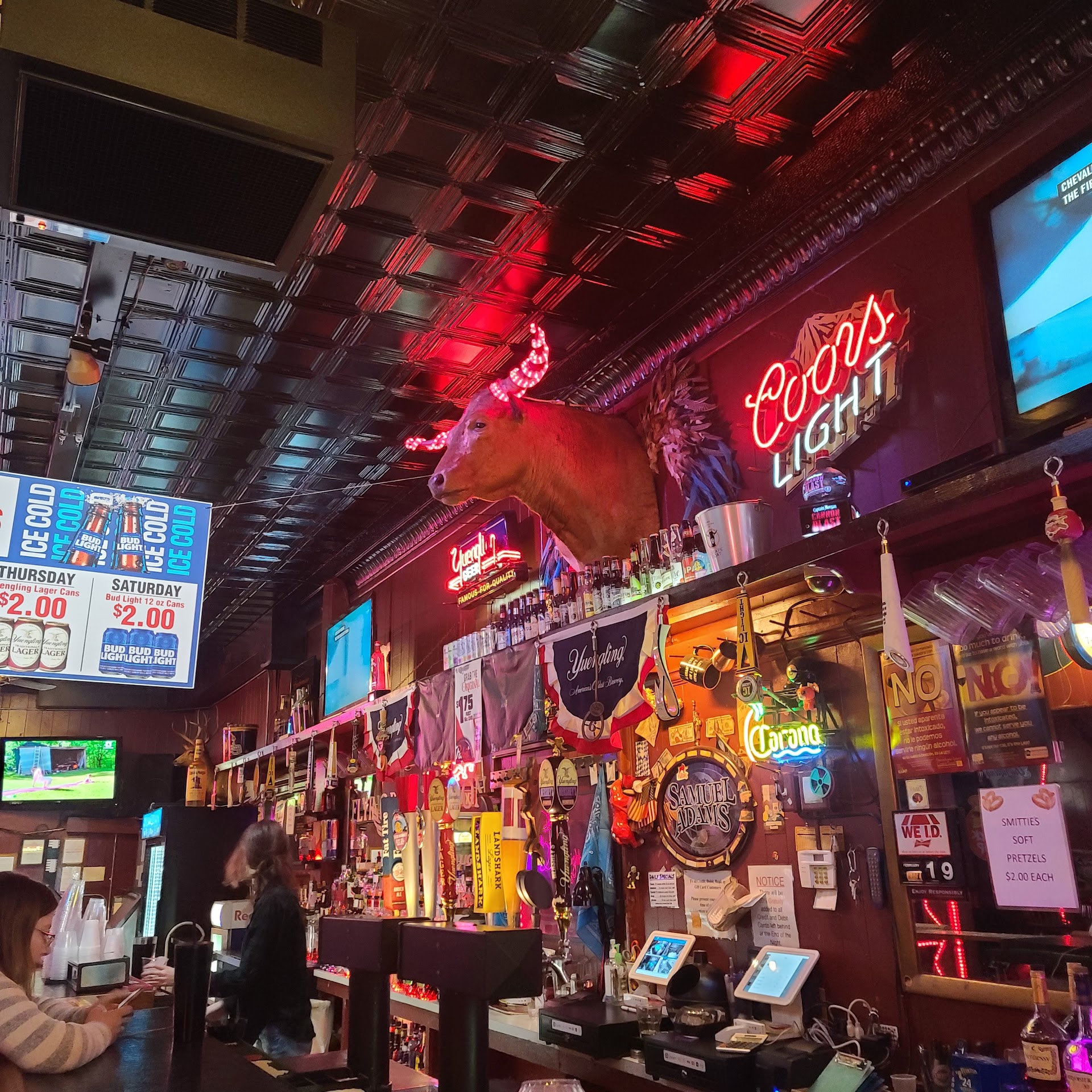 This place is smoking and has a TouchTunes, two pool tables, and beer pong set up. The bar seating is pretty extensive. They offer an atmosphere where you can sit by yourself and chill or talk to people near you. Music ranges from classic rock to country to rap.