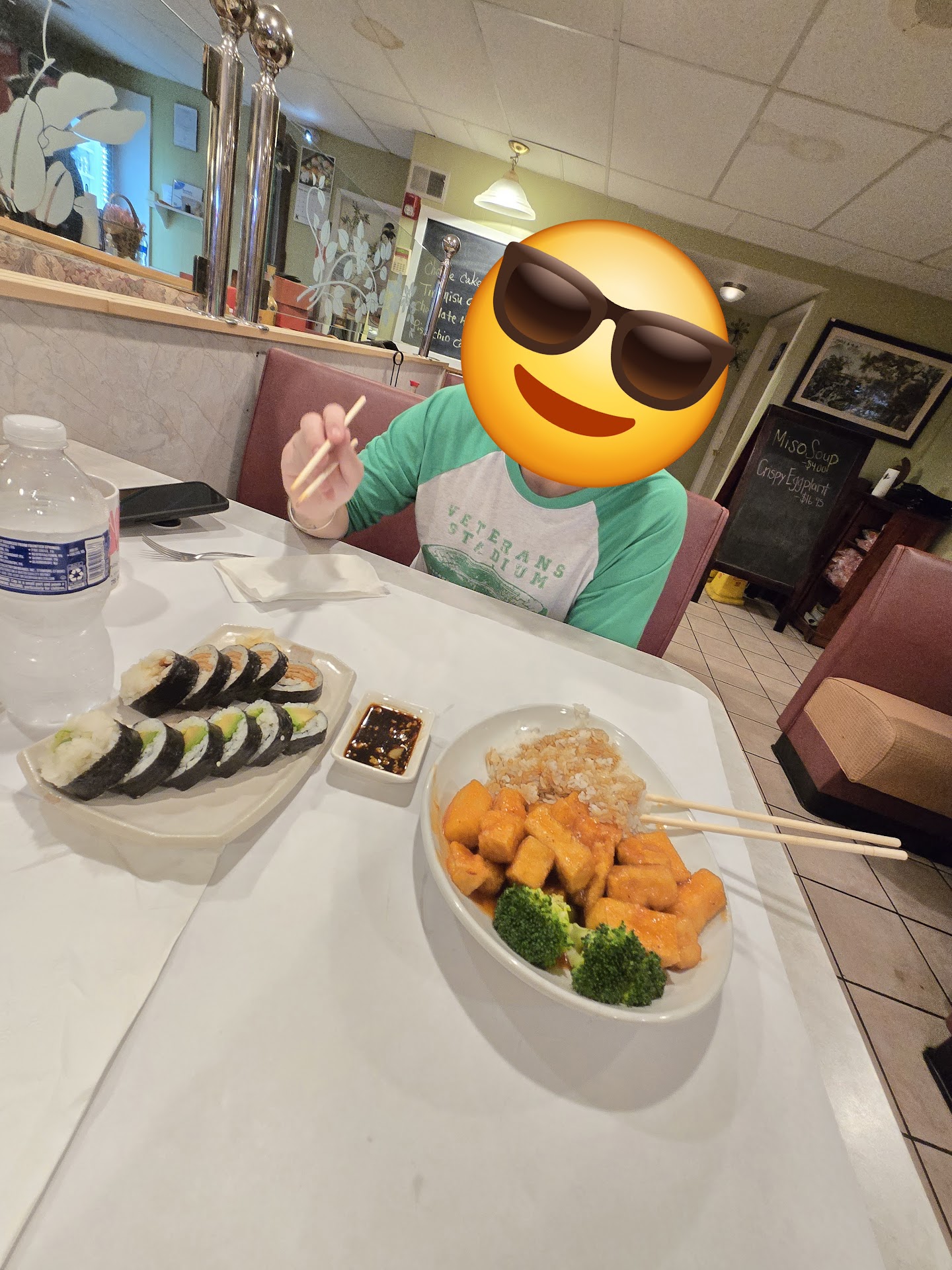 I will admit that the food was absolutely delicious. We got the General Tso's tofu, a couple of vegetable sushi rolls and spring rolls.