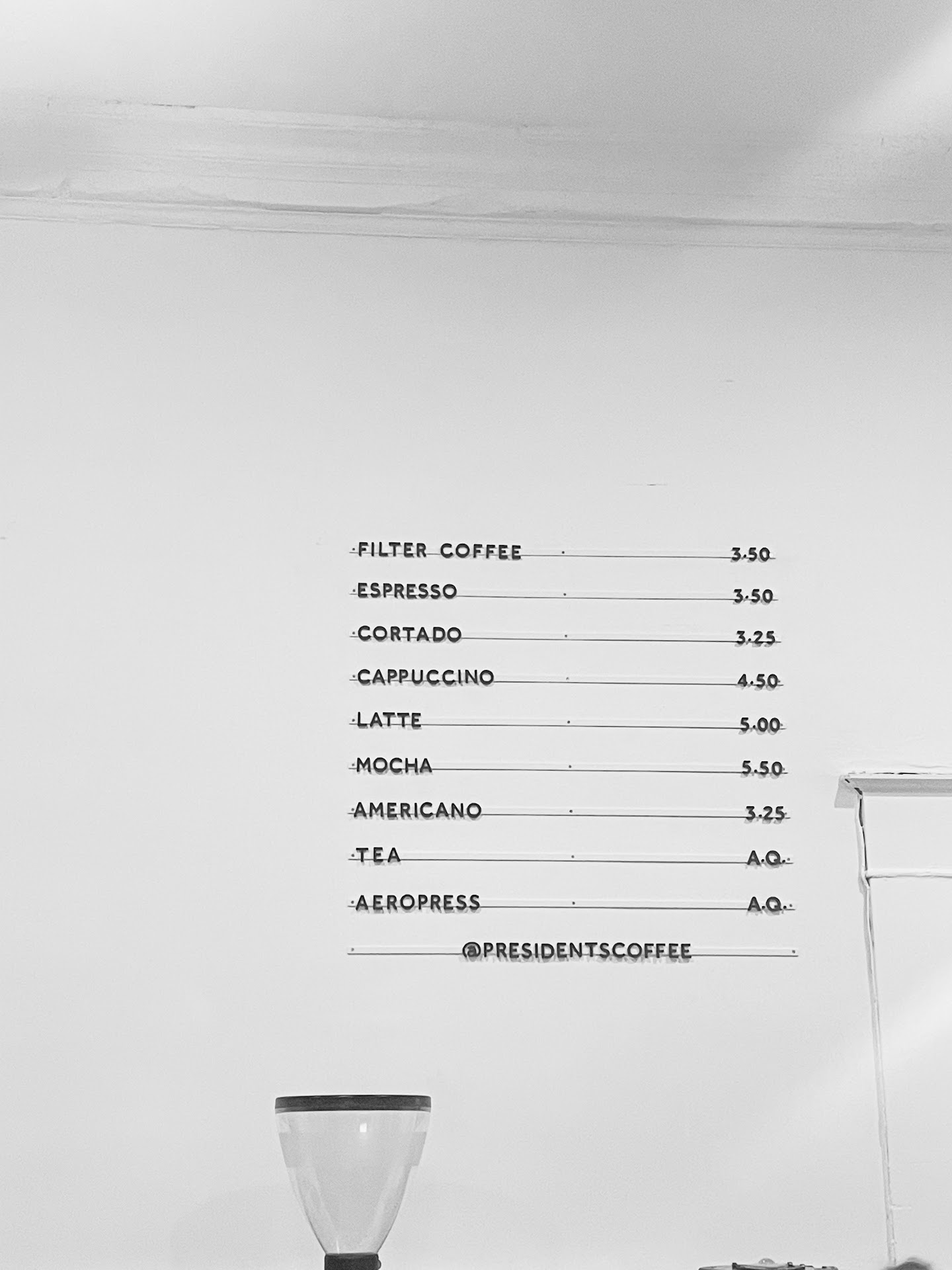 Read moreI've been to Presidents Coffee several times since it opened and it never disappoints. The seasonal orange mocha is delicious and, as a Brit, I'm so happy with the number of tea options they have here too (something I don't come across in most coffee shops!). The varying pastries and food choices are always great and I love that they partner with another local business to provide these - the slightly salty chocolate chip cookie is the perfect side for a sweeter drink. The atmosphere is always wonderful and never too noisy, I really enjoy working from there when I need a change of scenery. It's cosy, welcoming, and you never feel like you're being rushed out of there. Parking is really easy with the street meters (which you can use an app to pay for and add additional time). I'm always willing to drive the 25 minutes from my house to spend a morning at Presidents, it's one of the best new additions...