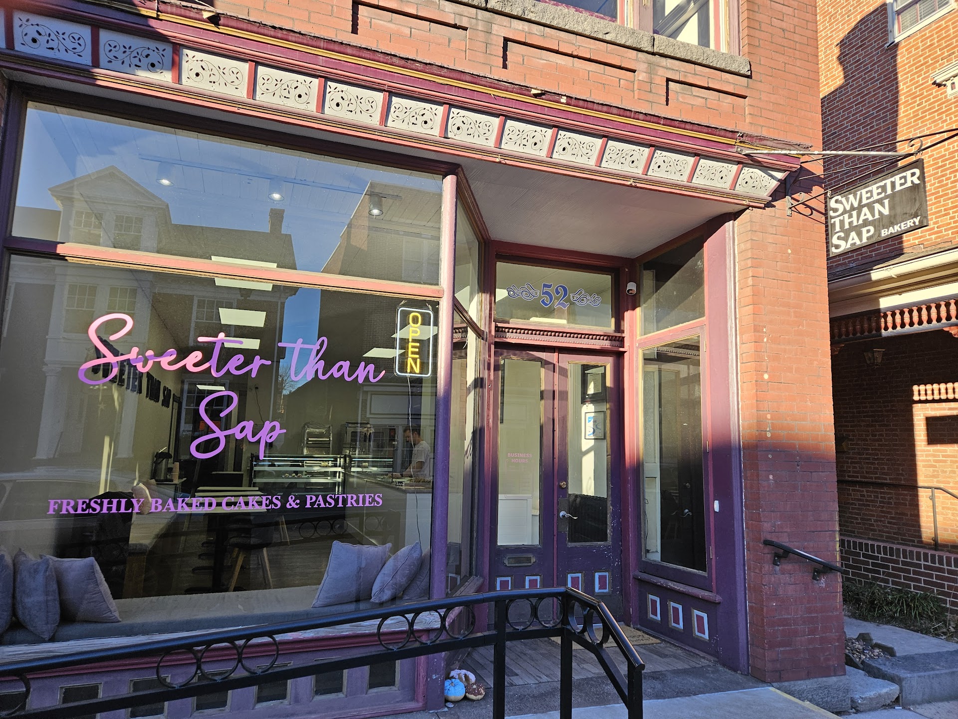 So let's talk location. Sweeter than sap is located across from the community theater and is in a prime location. I remember back in the day when this used to be a music shop.