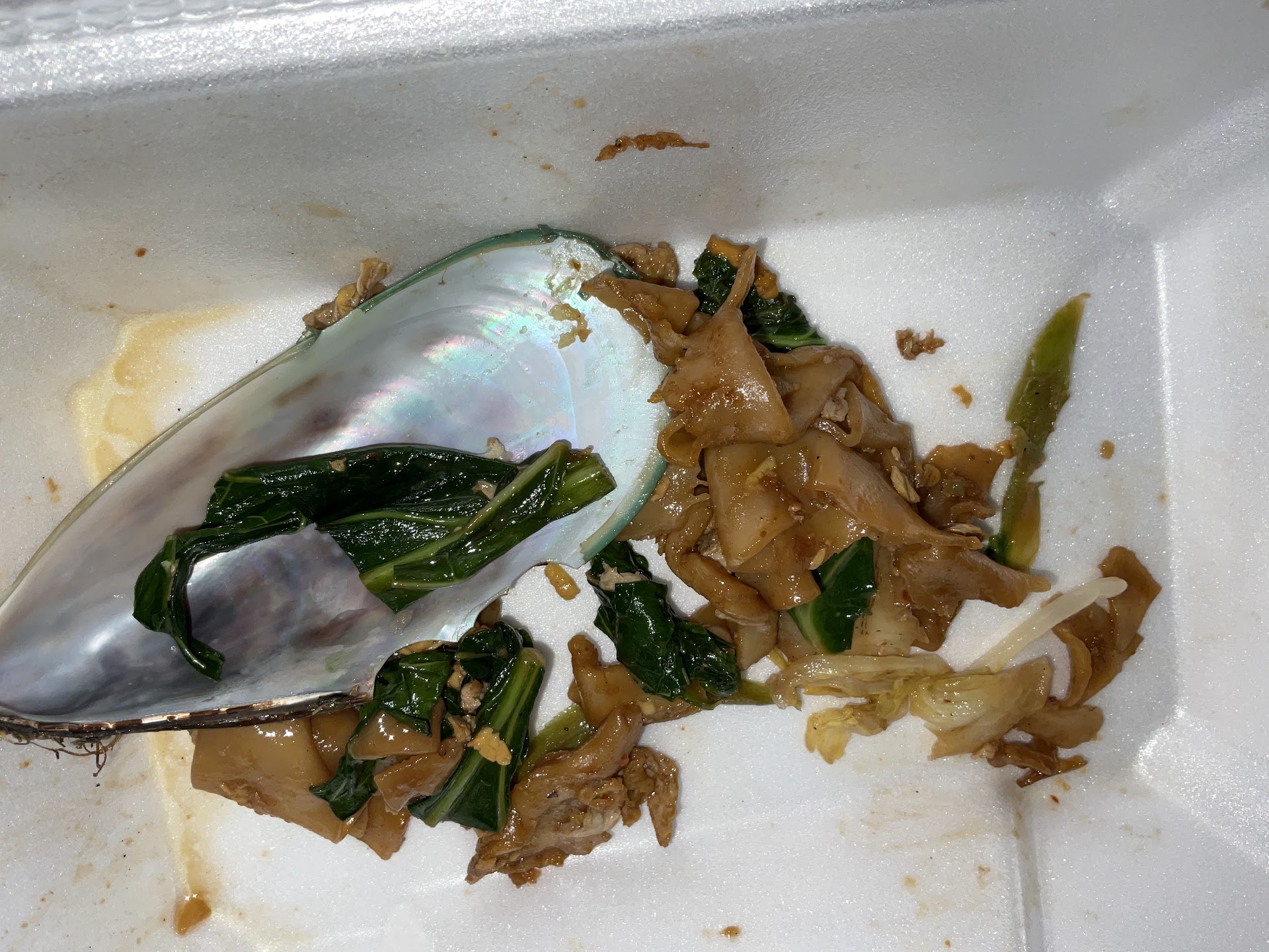 I got to try their pad see ew with tofu, the Thai iced tea, and the pad Thai with seafood. The pad see ew was quite good. A tad bit on the spicy side for me, even though I selected a very low spice level. It was still quite good. A nice amount of sauce, tofu, and vegetables.