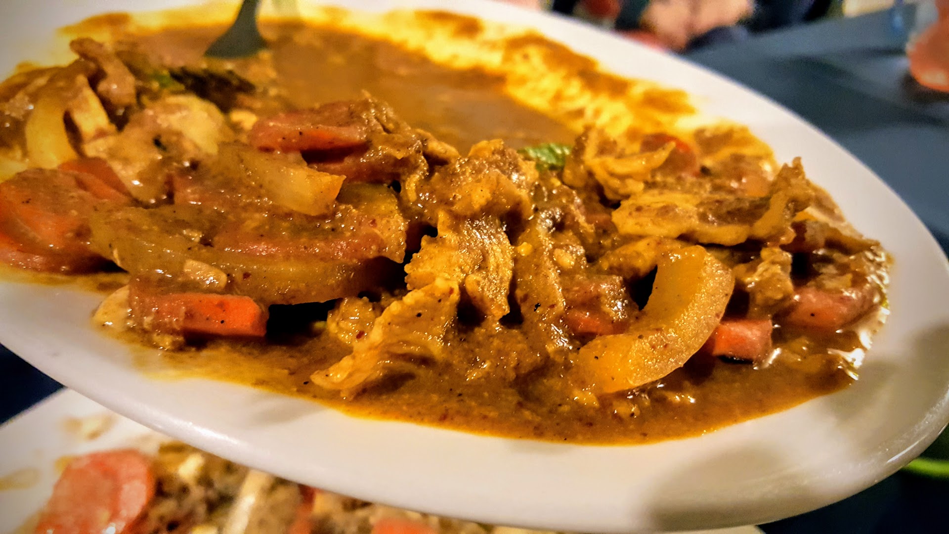 I had ordered my curry extra spicy. What I got was colorless, tasteless, and bland, as was my husband's. We asked the server if it was supposed to be spicy, so she offered to bring us some spices. She brought out a tray with three different containers of stuff we couldn't recognize and walked away. We experimented with it awhile and finally when she came back, we asked her what was what.