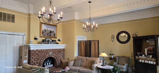 St.Jacques is in the Burke Manor Inn. It is a charming venue in Gibsonville. Across the street are operating railroad tracks, a train passed during our meal. A 2 story White manor with wrap around porch and rotundas on both corners is set beside a gravel drive and surrounded by greenery so you feel away from town. 2 enormous Magnolias are to one side of the manor creating a tunnel as you drive up. Entering you see a lovely staircase ahead and the dining areas in each rotunda. We were greeted with a smile and kindness. We were seated by a window in one of the rotundas complete with brick fireplace, sparkling chandelier and a floor to ceiling library shelves on one side. Linen covered tables (only 4 total) greeted us with fresh flowers and lights on every table. Listening we heard soft music, often French, to set the relaxing mood for our meal. The menu was extensive in my opinion with options of beef, lamb, seafood, and pasta for everyone including Gluten Free upon request. A meal here is an event- meaning it’s not rushed. We enjoyed each course and relaxed along the journey from appetizer to dessert. It felt like we were dining in another time when dinner was an event not just a time to eat. We highly recommend treating yourself to the experience. We will...