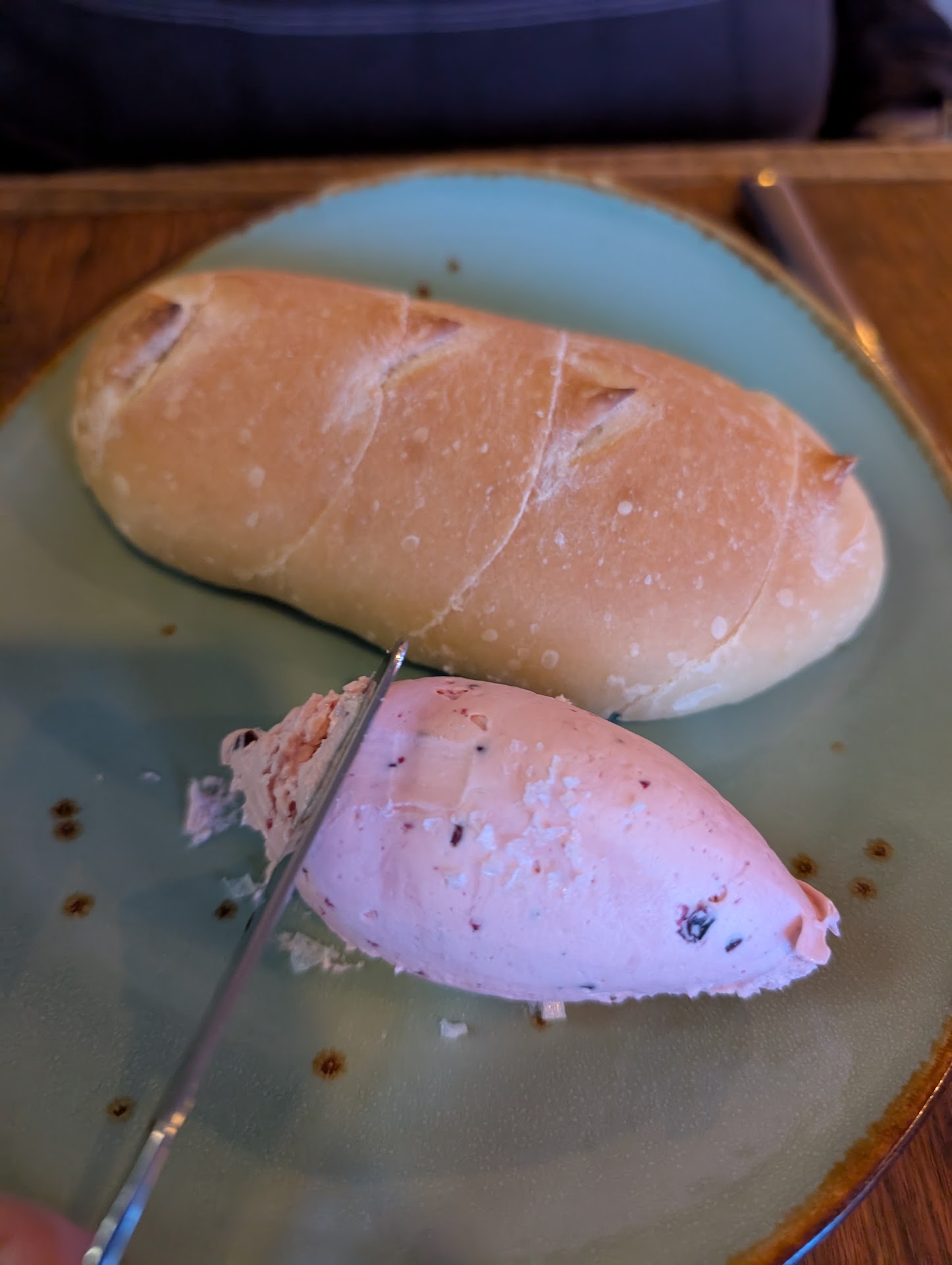 We started with an appetizer, Thai Larb Lettuce Cups, and ordered some bread and butter, which happened to be a sourdough with compound butter. Both were delightful, and the lettuce cups were full of flavor; if you order them, be prepared for them to be a little messy, but the flavors were so there! We would order again.