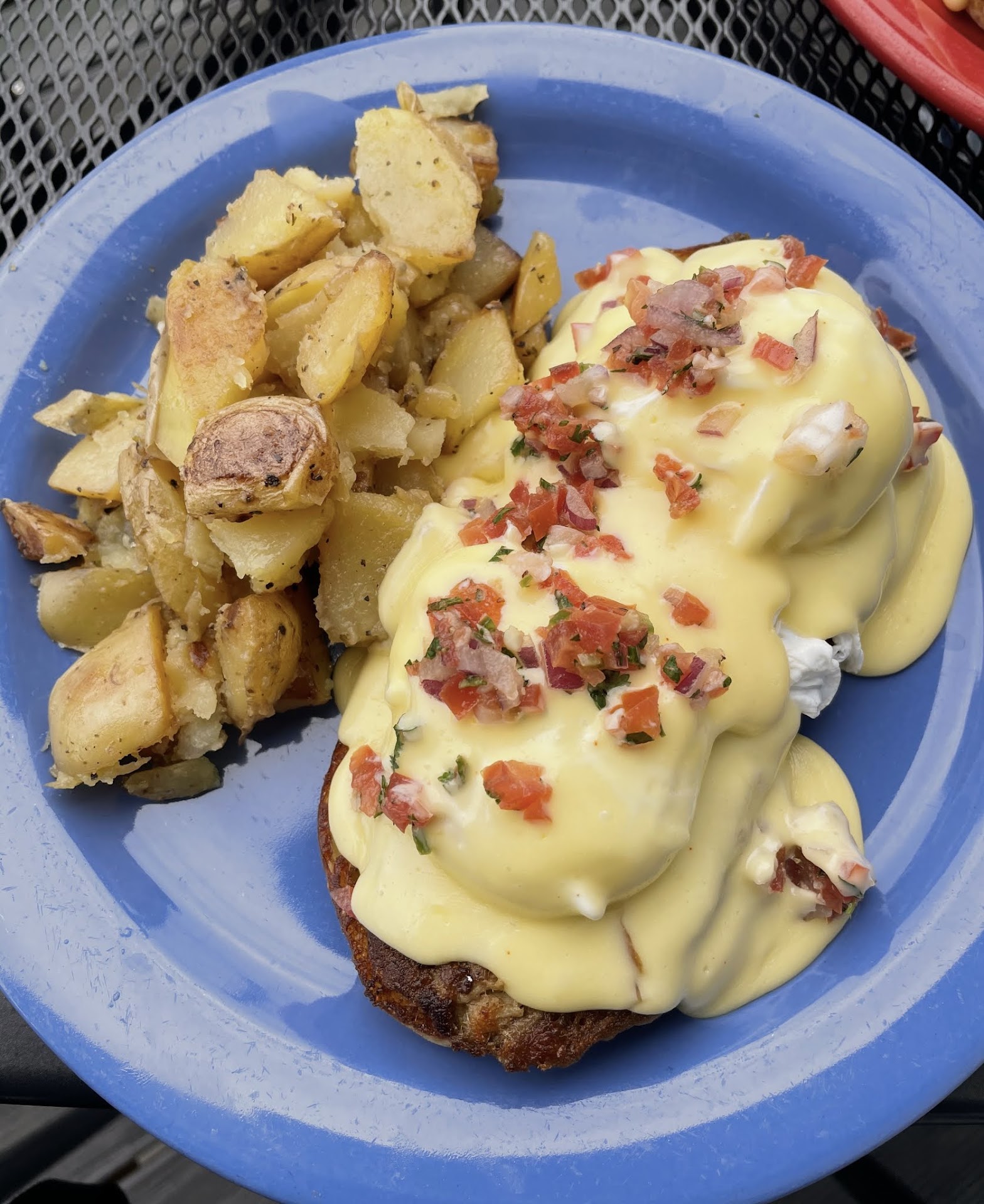 The menu was a treasure trove of delectable options, spanning from breakfast to lunch. My wife opted for the sumptuous Salmon Eggs Benedict, perfectly poached and draped in a rich hollandaise sauce. I couldn't resist the allure of the Corned Beef Hash, which promised a hearty combination of braised beef and fresh morning potatoes topped with two soft poached eggs. The detailed description I found online stated, "Corned Beef Hash—braised beef cut with fresh morning potatoes, topped with two eggs cooked your way and raised with whole-grain mustard cream sauce." However, I noticed that I was charged an additional $4 for the eggs when I glanced at the bill. In hindsight, I should have inquired about it while paying, but I didn't have the menu in front of me at the time. I'll certainly remember to clarify such details next time!