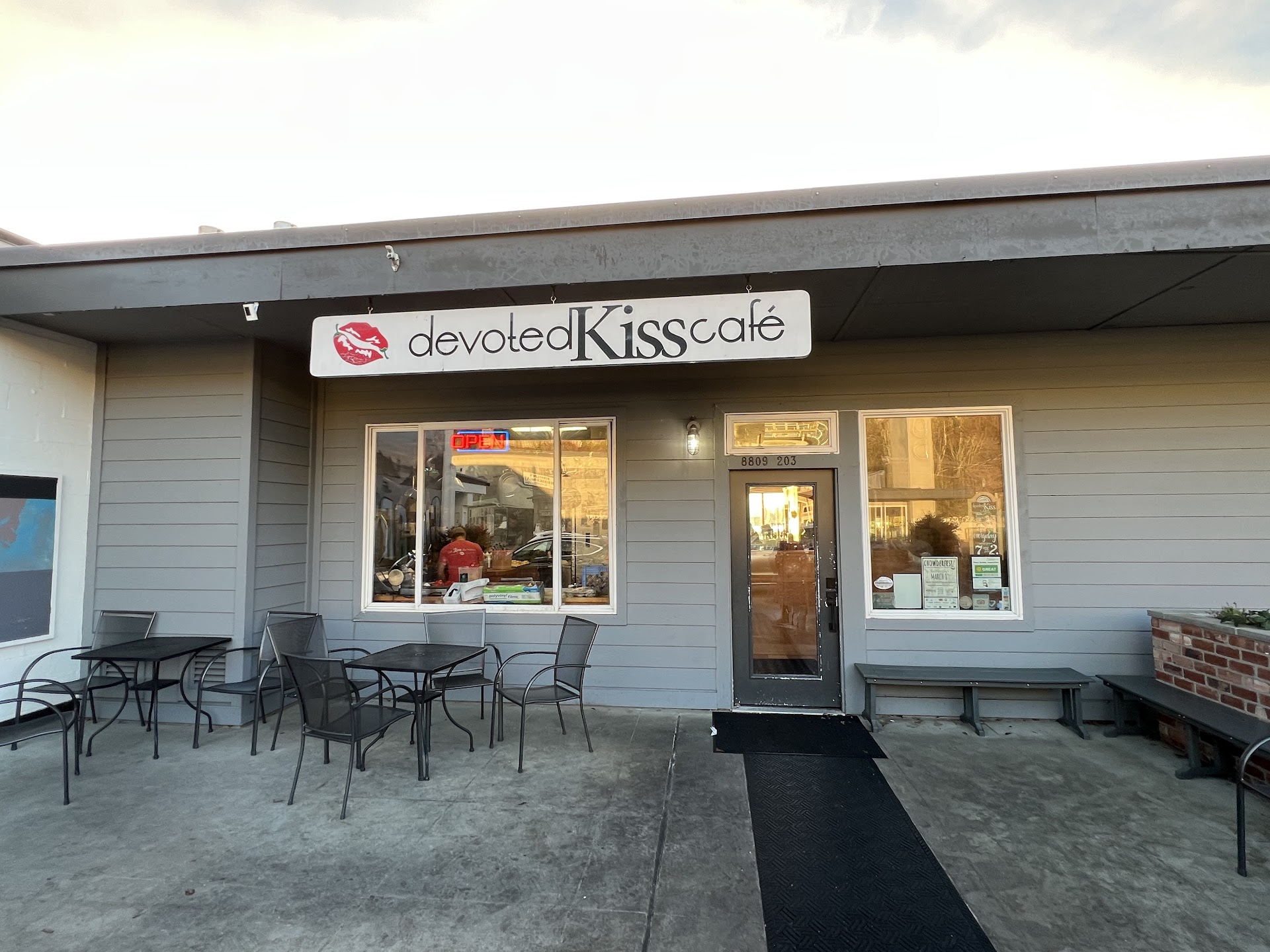 Read moreI had high hopes for this place after reading the reviews and driving by seeing people lined up out the door. Finally deciding to give it a shot, I placed an order for takeout as I wasn't planning on wasting half my day waiting for a table. At first glance the menu looks promising, boars head meats, 'fresh' ingredients, 'homemade' pastries...I ordered eggs Benedict with a side of home fries, and a cinnamon roll. The food took over an hour to be ready for pickup, and when I finally got the call to retrieve it, I was greeted by overworked staff and hostile management. The Eggs Benedict was cold, like it had been sitting on the counter for half my wait time while they made the potatoes–which were hot but soggy and covered in an absurd amount of grease. The cinnamon roll was stale and under-proofed, and the only 'flavor' I found in it was the overwhelming slop of frosting on top of it. If I wanted a hunk of bread with some sugar on it, I would have just gone to Albertsons, at least there's cinnamon in theirs. For a cafe that seems to brag about having a diverse menu with such high quality and flavorful ingredients, you'd think they'd know how to make the flavors and textures work together. 'Devoted kiss' is the place you go to by mistake thinking gig harbor signed off on opening a strip club. I've never been so disappointed by a restaurant to the point where I reconsider my eating disorder recovery. The food isn't worth the hour long wait, let...