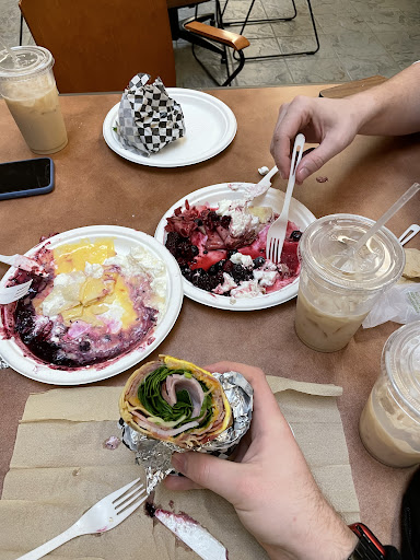 I ordered a Brie and apple sweet crepe (it can also be made with savory spices) for 6 dollars. After picking out an apple from the countertop, I watched as the cook chopped my apple, sliced my Brie, and poured the dough onto the crepe maker. The heaping crepe was served on compostable disposable plates and cutlery with a satisfying flourish of whipped cream on top.