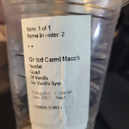 Read moreThis Starbucks location is the worst I have been too. Regardless that it's a new location, the staff needs to step up their customer service to be more friendly and not snotty, and concentrate on getting their drinks right. My drinks messed up twice and charged an extra $2.35 for 2 shots of milk when it was supposed to be cream, which is free on the counter. The drive-through should get it right and not make me have to come in to make sure it's right, regardless of that, a colleague picked up the order and did not know it should not be milk and should not be charged. She asked for cream. Other colleague drinks messed up three times and one other colleague, her drink wrong as well. This was four separate occasions all through the drive-thru. The biggest peeve of all, we had all written our orders down, so it should not have been wrong when it was so clear and the person who picked up the drinks gave them the sticky...