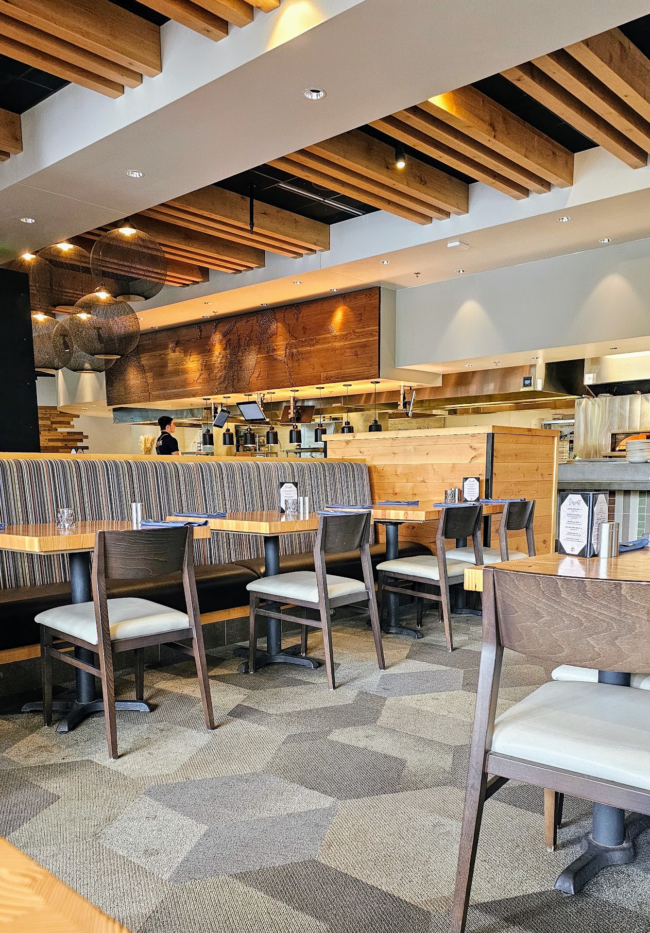 Table 47 is located in a shopping plaza/center. 5268 Point Fosdick Drive, Gig Harbor, Washington. Several businesses surround it such as PetSmart, Matteress firm, Autozone, and so much more. Parking isnt an issue.
