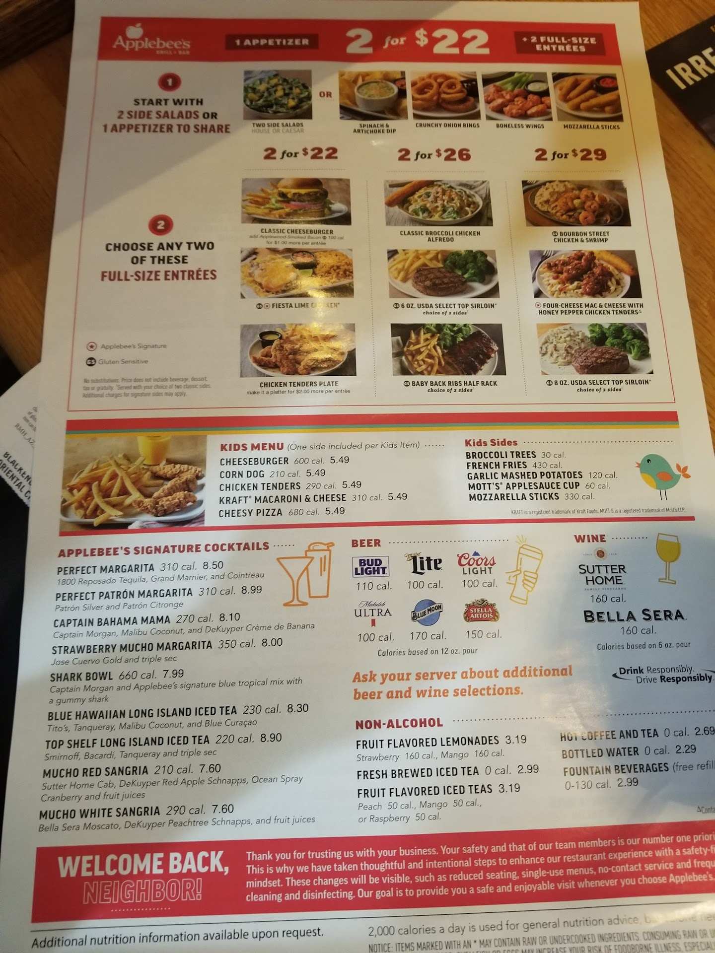 Read moreHighly disappointed. I came in on Tuesday 1/9 after work with my boyfriend, as originally we were going to just do a friendly little half price appetizer night. However, when most of the appetizers I wanted weren't included I decided to go ahead and get a meal. So mind you that is at least 3-4xs as much in cost. So I'm expecting to get full and have something tasty. I order the entrée that I usually get at Applebee's when I want a meal, the sauteed chicken, mushrooms, and shrimp, with mashed potatoes . Now being that I've had this multiple times before, I KNOW what it should taste like. It's usually very flavorful and decent in portion size. No, NOT THE CASE HERE. It was the whitest, Fakest looking, cloned meat looking, FLAVORLESS, chicken breast, that I've ever seen. I even asked the waiter if it was cooked, immediately after he set down the tray because it looked so strange. He claimed it was and asked me to cut into it. Obviously there is no blood as it looked like this had been cooked on an 'at home George Forman' grill, with its 3 grill marks, so I basically have to take his word that it will be ok. I'm also with my guy so I'm not wanting to make a big deal and complain but in cringing inside trying to eat this food. I only ate half the chicken while there. There were only 3 pieces of tiny shrimp in the entree, which seems like a few less and MUCH smaller than normal, and that little splat of mashed potatoes was not much of a treat as well. It just was the most bland, yet overgreasy meal. I mean no flavor at all except from the mushrooms.
