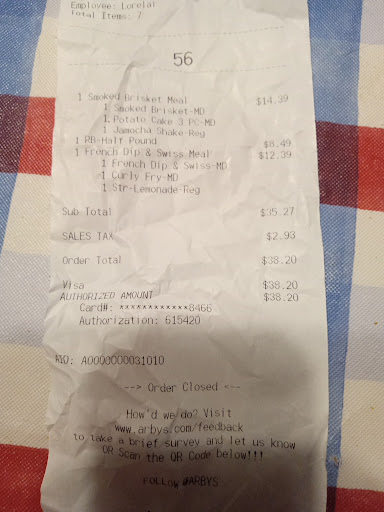 Read moreGot sick after eating beef & cheddar. Both hubby and I got sick. I called the store to let them know. Mark (identified himself as manager) apologized, said he would check food right away and offered refund. I went to the store the next day to collect the refund that I was offered. Marisa (identified herself as manager) said that I needed a receipt. I explained that we were not given a receipt. She informed me that she was the store manager and she could not issue a refund. She asked what the issue was and I told her that we both got sick within 30 min of eating, so I called the store. I explained that Mark was very kind and offered the refund. She shared that no one else got sick. I indicated that she seemed to be saying that I was lying and she said, " No, I just can't do anything without the receipt." I again stated that there was no way for me to produce one and Mark offered the refund, I didn't ask. My concern was that others may get sick. She again said no one else got sick. I asked for her name and headed for the door, when I heard her say to a co-worker, "Can you believe this?!" I left the store still feeling nauseous, but now I am insulted and angry. I am a mature adult person and to be treated with such blatant disrespect is appalling! There was no need to defend that $20, Marisa. I don't need it and neither does Arby's! Your lack of customer service skills clearly indicates that you need more training or perhaps a different position. I am a former customer service specialist, so I do have high expectations, but you did not meet even the minimum standard. I will not return to this store and I do not recommend this...