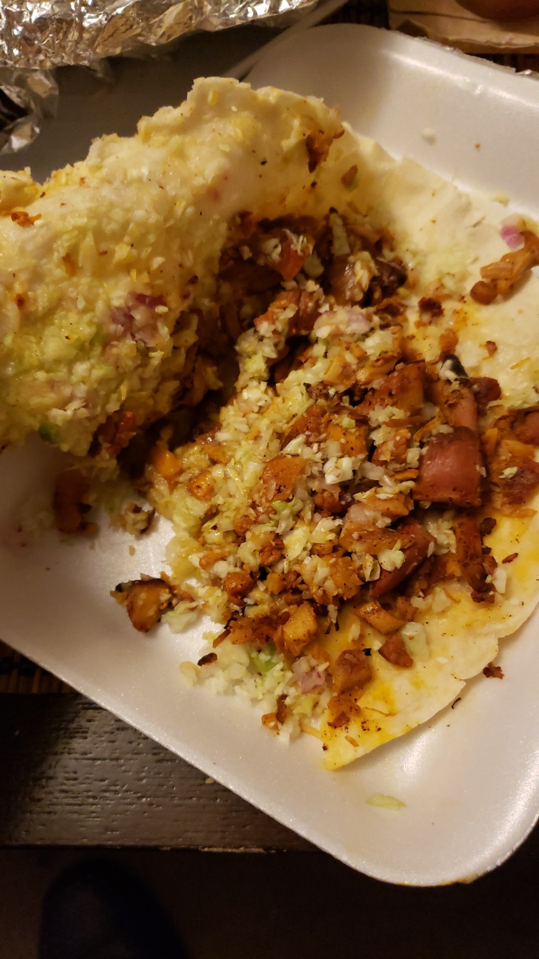 āā This was a long time favorite for us for years. Carne Asada was always good. Chicken is mostly good but maybe one out of 10 times seems weirdly off in flavor. Not sure if itās the spices or who cooks it. -beans and chips are too plain. -potato loco comes with butter, cheese and sour cream wrapped in foil and you cannot get it without dairy. Honestly potatoes donāt need to be cooked in foil. Itās a waste and harmful. I wish these were just cooked with Avocado oil and salted on the open fire or oven, and could get without dairy, because they would be a wonderful option if you are not doing grains. Traditionally, the tacos and burritos do not come with cheese(which is my preference) and come with cabbage. Wish they had bigger menu like; salads and lettuce as an option, a veggie burrito(like taco bells previous 7 layer burrito but no MSG)and cinnamon sugar chips, but nope!