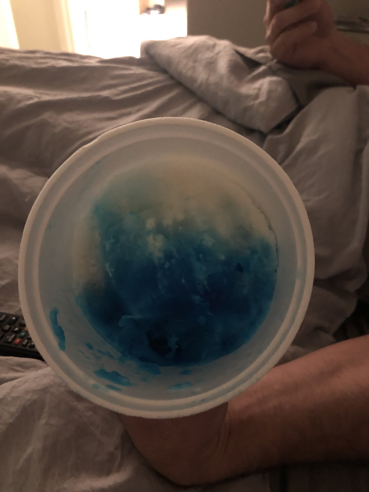 I pulled over and discovered the cap hadn’t been screwed on at all. The cap was completely off and at the bottom of the bag. The syrup had completely soaked into my car seat cushions, staining them blue. Not only is my car now a sticky mess, but I’ve lost half of what I paid for.