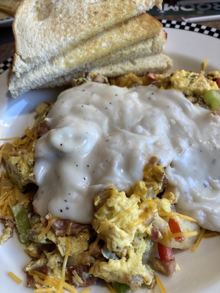 Read moreTo start off, on a positive note, our server was very nice and apologized for the unfortunate incidents during our visit here. The manager didn't even say one word about the issues experienced when I brought them up at the register, that's the real 2-star rating. Ordered the FULL rack BBQ rib dinner, $15.99. I received 5 ribs, yes 5, and even confirmed that it was a "full rack" with our server. Ok, so 5 really good ribs, I'd be okay with that. I had to CUT a piece of the rib meat in order to eat my 1st bite... baby back ribs should NOT require"cutting" if they're done right. 2nd, the taste of the rib meat/seasoning was aweful. I just couldn't eat them, I didn't even want to take that home. My mashed & gravy, corn mix and side salad were really good. I asked the waiter if I could just get something else for the ribs, as they were going back. I opted for the fried chicken, that's a no-brainer item on any menu, right? Well, unfortunately, as I cut into my chicken breast, I thought I had hit bone because my knife wasn't cutting through. I thought, what in the world, the chicken looks cooked, and I'm cutting into the breast portion, so what was up? I put a finger to the meat and confirmed my suspicion, the meat was FROZEN still! I felt bad having to relay this to our server, but he was professional and apologetic even though it wasn't his fault whatsoever. He took the cold and frozen chicken away and had the kitchen cook another order, which I promptly put in a ToGo box, so who knows what surprises I'll discover later. It was obvious that the kitchen pre-cooks/bakes their chicken, freezes it, then they simply throws the meat pieces into the batter/fryer when ordered. No one bothered to insert a thermometer to check before plating. Bad, bad, bad. Finally, we ordered the apple pie a la mode, that was good. Our waiter got a nice cash tip, and the manager gets this generous...