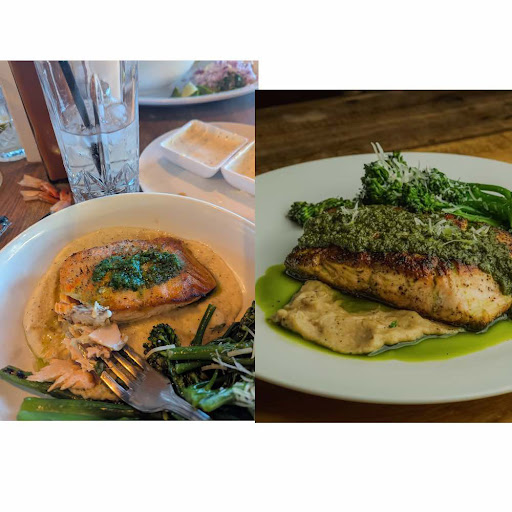We were looking forward to our visit but left very disappointed. First the restaurant is very loud, the high ceilings and open windows did not create a good environment for talking. The sun also came right through the windows and for 30 -45 minutes as it set it was blinding. They need window coverings. But we could have overlooked all of this it it weren't for the terrible service we received. Our server had a lot of tables all over the restaurant so we thought we might be waiting for a bit. We orders our drinks earlier then we needed and still ended up waiting. The food is expensive. We just got back from La Jolla and San Diego and paid similar prices for seafood in ocean front 5 star restaurants and would not have expected these prices in a strip mall in Gilbert. But even then we would have been happy with the prices if the food was good and the service was at least average. the shrimp cocktail was good, we enjoyed it. ($19) My husband asked for his salad with our cocktail but it didn't come until dinner and then with no dressing. We were excited to see shrimp pozole soup. (20$) But the huge bowl was mainly broth and very little shrimp and hominy. My husband left hungry. My pesto salmon was good, but very lacking in pesto. (42$)I attached a picture of their menu on the right and what I received on the left. Then we never got our drink order that we placed during appetizers. We saw our server twice. He never checked on us, refilled out water, or took our dirty plates. When he finally came by after our dinner we asked to cancel our drinks which still had not arrived. (We saw them at the bar and asked the bartender if we could take them, we were told we had to wait for out server.) He pulled out his card reader, deleted them, put the card reader on the table and walked off. He said nothing about the drinks, didn't ask us if we wanted dessert (which we did) and didn't clear off the table. He just left and never returned. We were a bit amazed. We ended up leaving and walking over to Crust restaurant for after dinner drinks and...