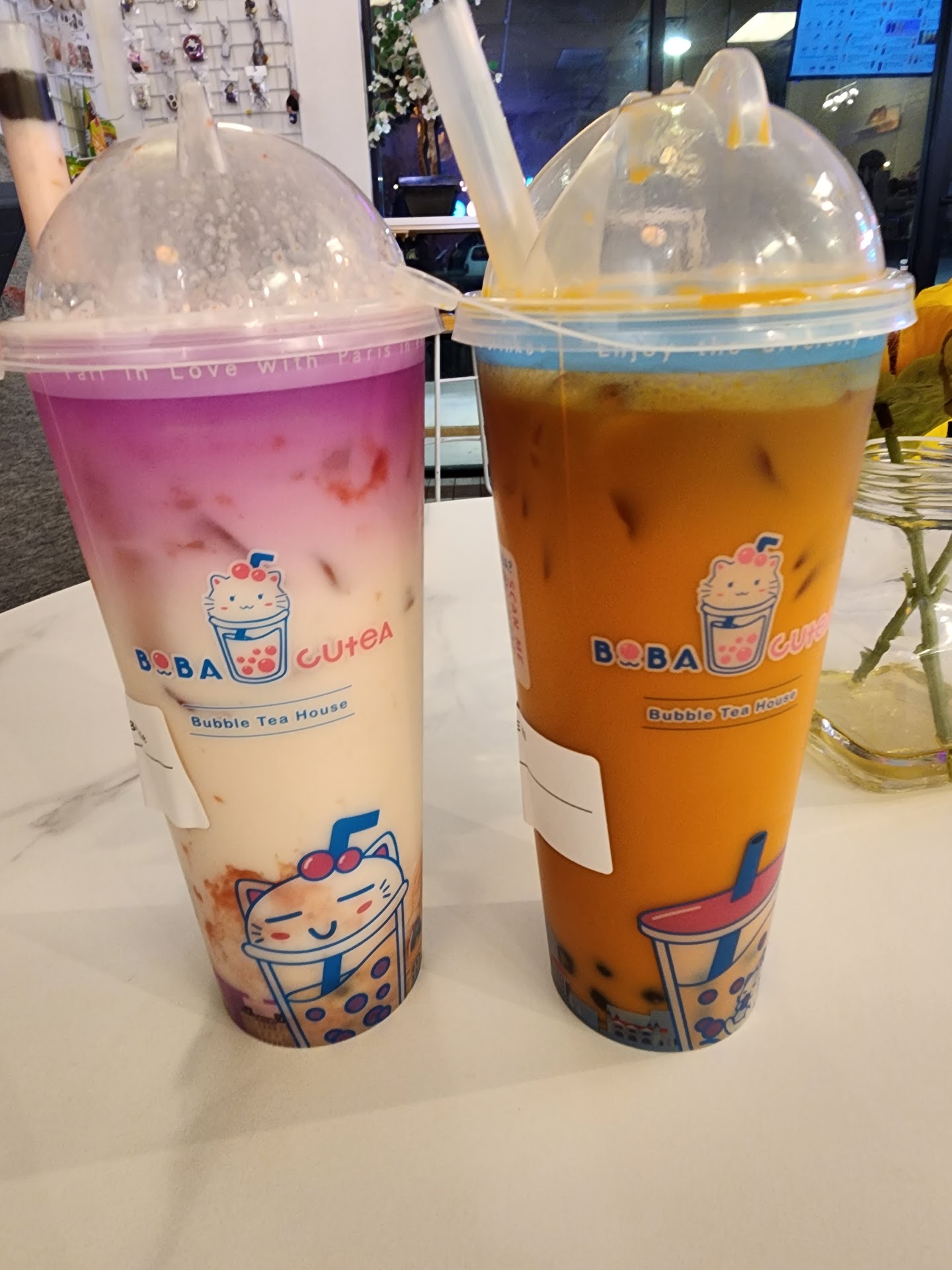 The boba: It was inconsistent in each tea for me. I did not like it in the brown sugar milk tea and Oolong Flower tea but it was okay for me in the Thai and Jasmine tea. They were not all soft and chewy like how I prefer.