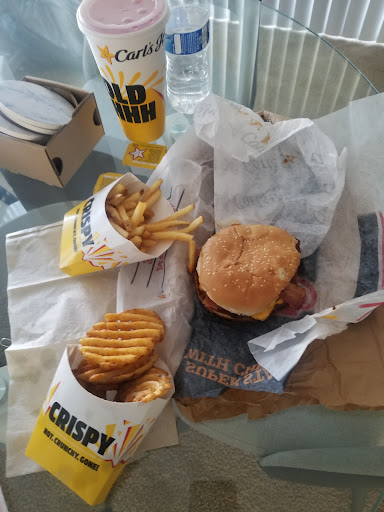 Read more1st time eating at this establishment, my son is in town visiting and he and I decided to try out Carl's jr.. The drive thru was the only option so I couldn't base this review on the inside or get any pics. But the drive thru was very fast and efficient, as soon as you pull up your being asked for your order, speedy service. They're well mannered, pleasant and pays attention to the details of your order. When greeted at the window, again very pleasant energy with the willingness to make your visit a great one. Mask and gloves are worn to provide assurance of safety and cleanliness. Service with a smile ( although you can't see the smile) you know it's there!!! The food was fresh, warm, packaged neatly and overall a great 1st experience... my son loved the burger and fries and was surprised how big the medium drink was... I will definitely recommend this location specifically to anyone wanting a great tasting burger and fries at a fairly decent price, a lil higher than other burger joints but im not complaining because odd the quality of the service... keep up the...