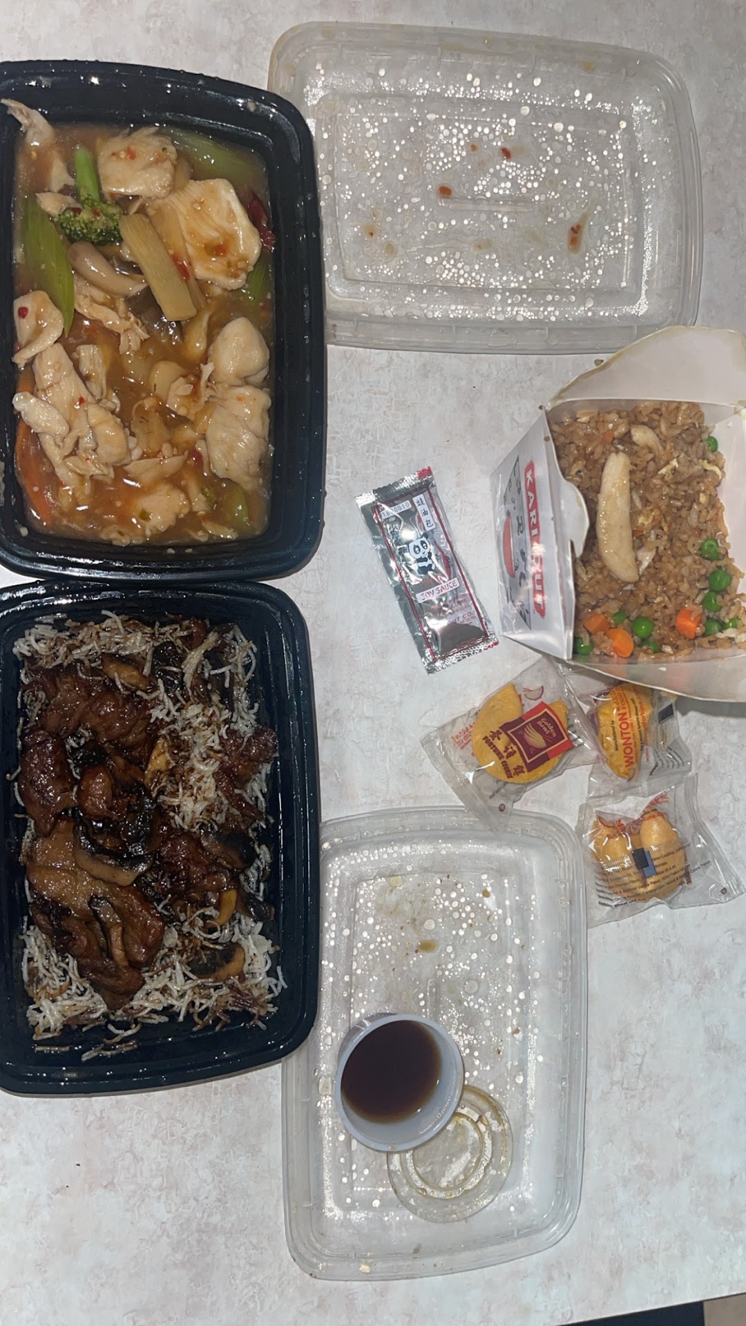 Read moreFirst off I would like to say I only tried this for the positive reviews, and tried to approach it as a food critic. First impression was good the place was clean and inviting. Once seated I got service right away and ordered hot tea. The tea cake fast and was hot, however in the pot was 1 small tea bag which was hardly sufficient for a pot of tea so the tea was extremely weak. I went to put some sugar in the tea only to discover all the sugar packets were hard as a rock and did not melt(?). I asked the hostess to get me some other sugar and ALL that she found were the same way. So that was the end of sugar in my weak tea. I scanned the menu to decide soup or appetizer, prices are very high and they only had 3 kinds of soup, wonton egg drop and sweet and sour, so I decided to try an appetizer, unable to make a choice I chose a sort of pu pu platter. This had 1 beef stick(rubbery) 1 spring roll (oily glop) 1 crab puff ( cream cheese only) 1 fried wonton (filling so small it was a joke). Ok now for the main corse. Pung Wok (chicken, beef and shrimp. (I asked if I could substitute onions for jalapeños pepper but was told they don’t have any). I also asked no onions or celery but when the dish came out it was MOSTLY onions and celery. I ordered this dish because it had water chestnuts, there literally was 2 in the entire dish. The chicken had a very strange texture like it was boiled then pan fried. Same with the beef, the shrimp were a decent size but there was only 3. Also the White rice was cold and dry when served. Oh while I was still eating the server dropped the check off, never asking if I wanted anything else. My check was $27.98 plus tax $2.18, $30.16