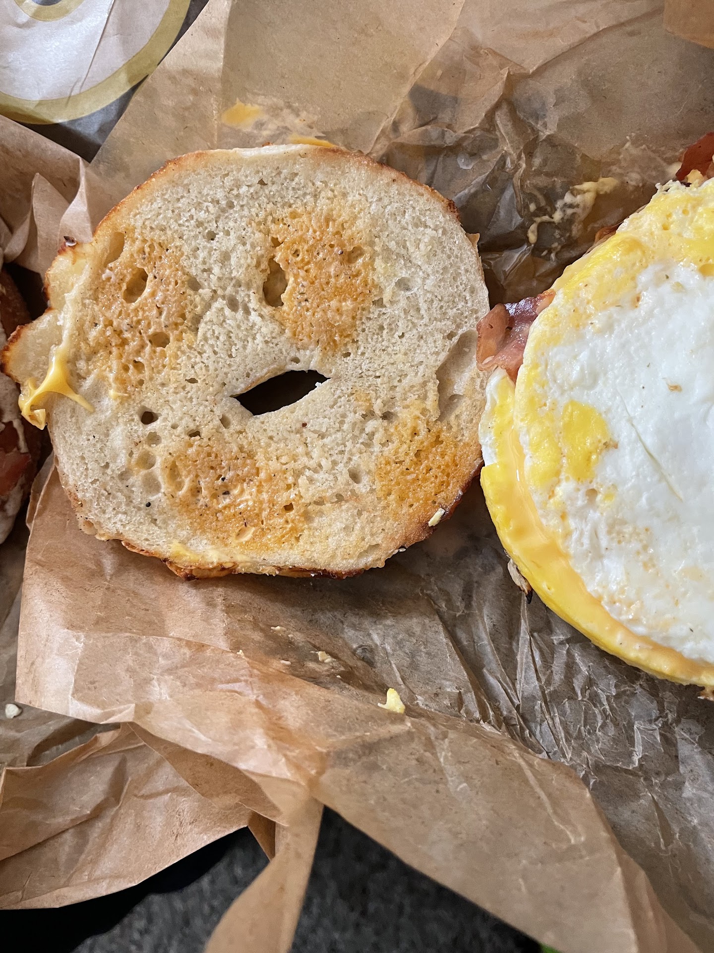 Clearly the slicer was working for the breakfast sandwich I ordered but not for my bagels???!!!! See image attached.