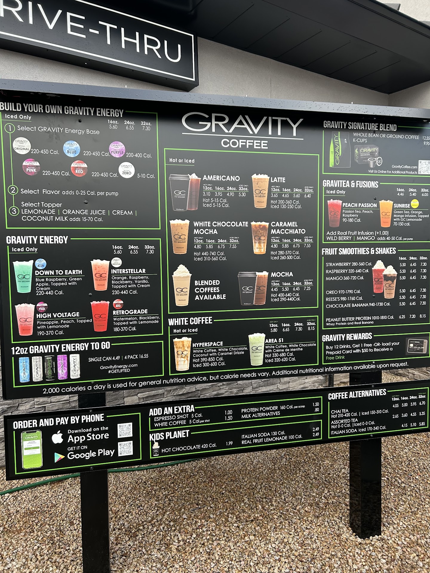 š I like to try new places at least once. The employee was very polite and friendly and did offer the rewards program, but unless Gravity starts to have amazing deals or their coffee is better than the other coffee places we already have, the Circle K next door might be its biggest competitor. The only thing that Circle K doesn't have is a drive-thru, but their drinks are cheaper and they...