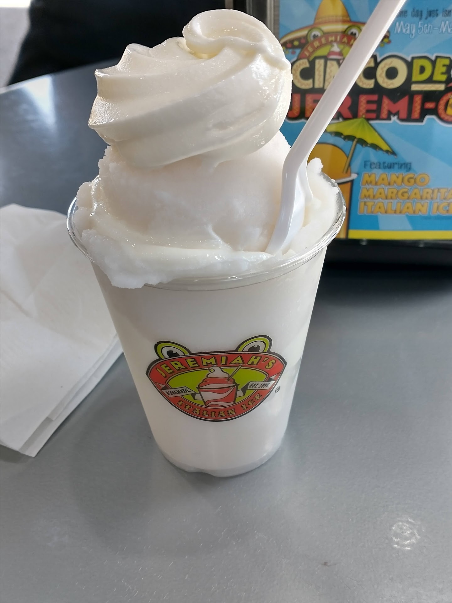 Read moreMy sister and I stopped in this afternoon and were so happy to find excellent ice cream, impeccable service and an immaculate store. It was great to find - for the first time in many years- soft serve frozen custard that comes really close to our beloved Carvel in New York. We're kind of hard to please in this category and Jeremiah's did not disappoint. The gentleman who helped us was pleasant, helpful and patient. The only downside to our visit was a man who walked in a few minutes after we were served and seated. He was immediately and very politely informed by the man behind the counter that he needed to move his large pickup truck from the active driveway that he was fully blocking. This man was beyond condescending and rude to a person who was doing his job, and doing it well. He kept insisting that his order for a coconut ice be filled. He was informed each time that his order would be filled once he moved his vehicle, even when the employee explained, several times, that his vehicle could not remain in the driveway because it was the only way for drive through banking patrons to exit. This guy just wasn't getting it and was being a total jerk. Andy, the employee, never lost his cool, and did not alter his demeanor of professionalism. I honestly don't know how he managed to continue speaking to the man without losing it and sinking to the guy's level.