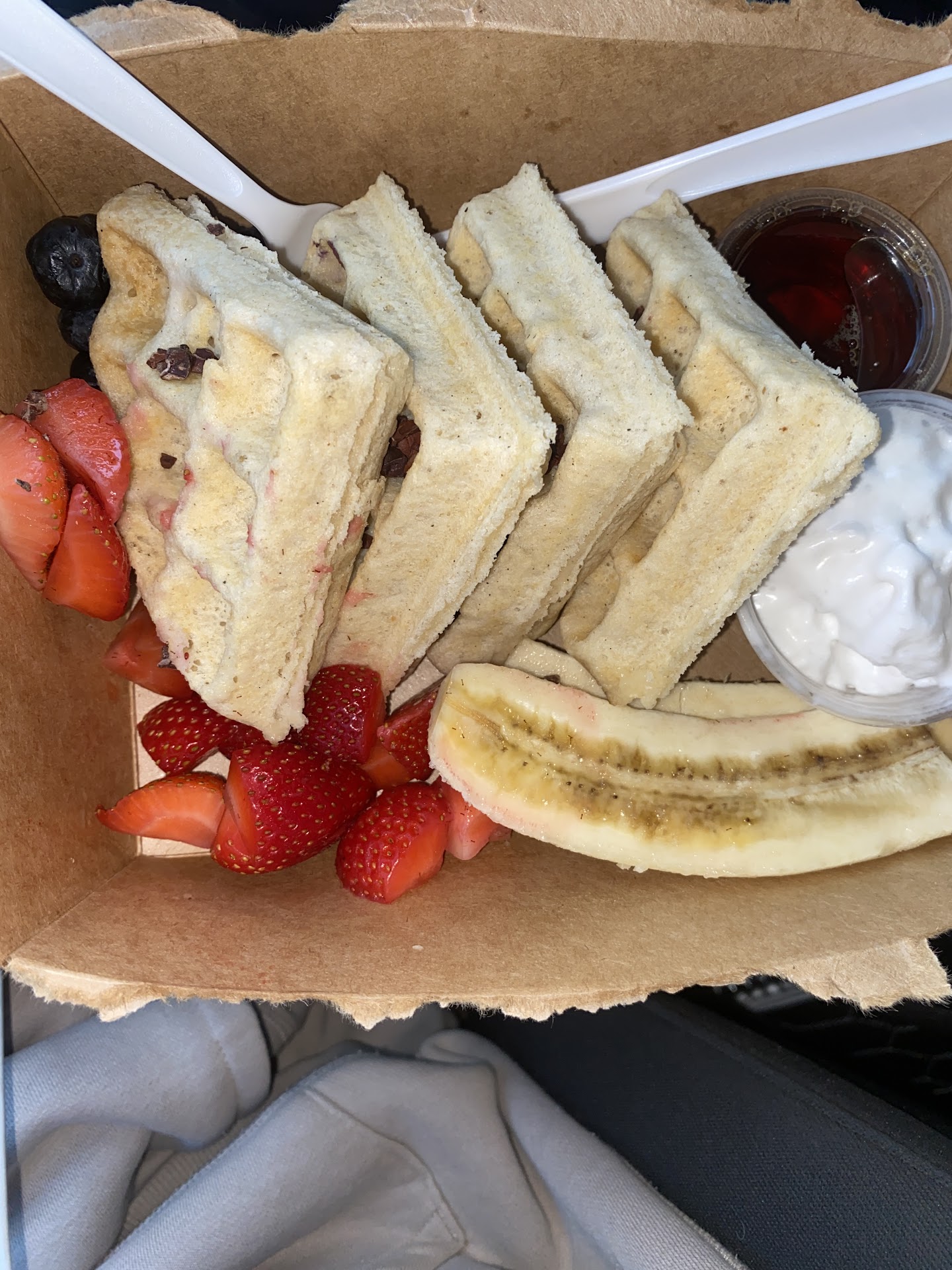 The tuna sandwich was beautiful but incredibly messy and hard to eat with very thin bread that didn’t hold together. Also mostly lettuce. So not filling. Didn’t have zucchini, and asked for extra “tuna” instead but doesn’t look like that happened.