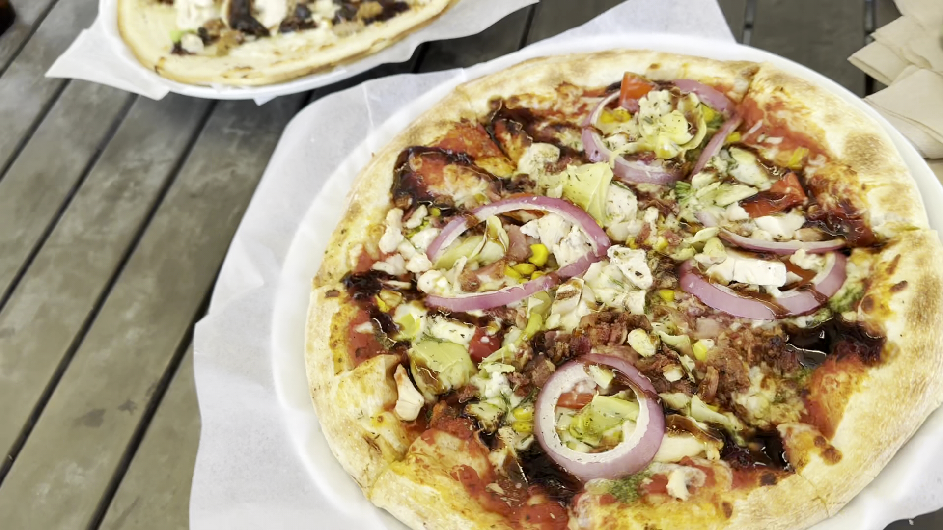 Read moreWe walked in. No line. Plenty of staff. The girl at the counter was not friendly at all. She didn’t look at us either. She took our order begrudgingly. My husbands pizza was super sparse but he didn’t ask for more stuff and that’s on him. He felt odd and she was off putting. After the girl made them the manager was rearranging them. I think he was trying to redeem them. Overall this place is good. The pizzas were cooked perfectly. The crust was so wonderful The person on charge of pizza cooking is skilled. I had the double crust. So good. The location is great. Interior is too loud really to enjoy your meal though. But it has a patio. Except the patio was not clean or organized. Despite ample staff. The tables were scattered and dirty. There was no garbage on them, but no chairs were pushed in, tables were misaligned, table tops were greasy and crumby. There were napkins on the floor that I cleaned up after I wiped and straightened the table. The soda area was clean and organized. The floors were clean. The girl cutting the pizza was friendly and smiled. I like the pizza a lot and the quality of the crust, the crust options and the topping variety are what sells the place. The young blonde’ish girl may need a refresher lesson on customer service. I will Come again. Usually the place is kinda messy but the people are usually nice and the food is...