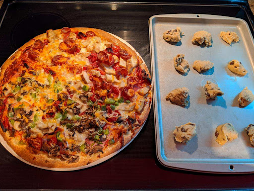 Read moreI leave this review here online to let you, the reader, know that there is no point to order online. I planned my evening out like a responsible person. Ordered online 30 to 45 minutes before I knew I would be at the location to retrieve the goods. The app gave me a pick up time of 6:00PM. I arrived promptly at 6:02 only to see them all diligently working on the pizzas of individuals ordering in the store itself. Once I got to the counter, lo and behold, they hadn't even started my order. I then preceded to wait another half hour for them to make my order of 4 pizzas. I was under the impression (largely by the big signs that say as much) that ordering online meant a quick-pick up. Here, it seems that ordering online does absolutely nothing since they won't start making the order until you're standing there ordering just like you were...