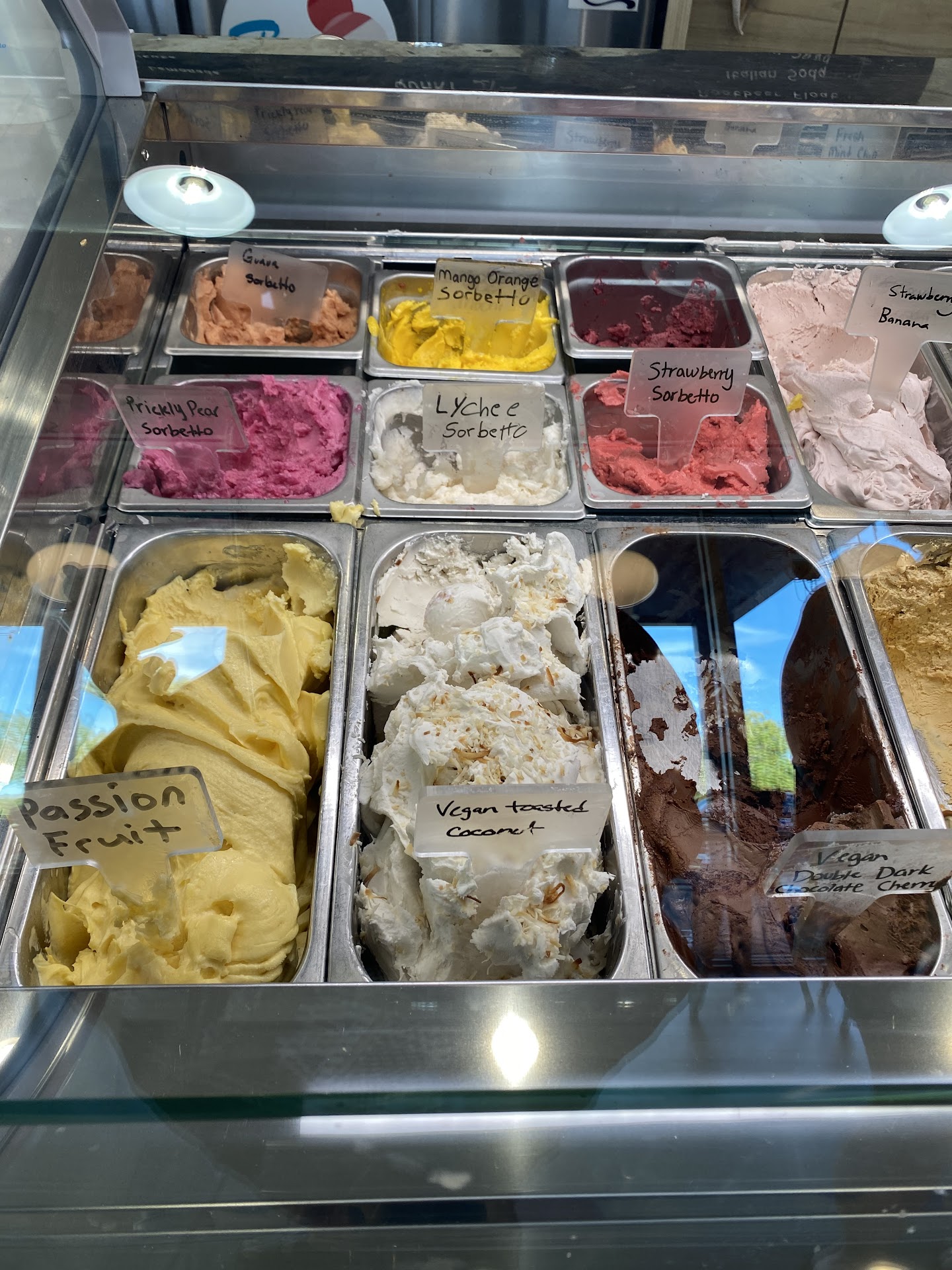 Loved loved loved it! Definitely will go back. Love the flavors. I got prickly pear and guava. I love everything with those two flavors. The ube was sooo good too. Next time I'll get that with coffee. When living on the islands ube coffee was my favorite 😍 😋. Definitely want to do a gelato coffee ☕️ with a scoop of ube added. Extremely kind service too. Clean place. Only thing is this tasted like American ice cream. I live in Italy 🇮🇹. Gelato is like religion there along with pork, cheese, pizza 🍕 and pasta. (Actually live there. Wasn't a tourist lol 😆 see my other reviews as proof) I still love the place. But my Italian husband would be a critic. Though I showed him photos and he wanted to try the varity of flavors. When be comes to the usa to visit my family here, he avoids anything Italian. But I definitely think he'd like this place. He loves guava and ube too. I'll be back with or...