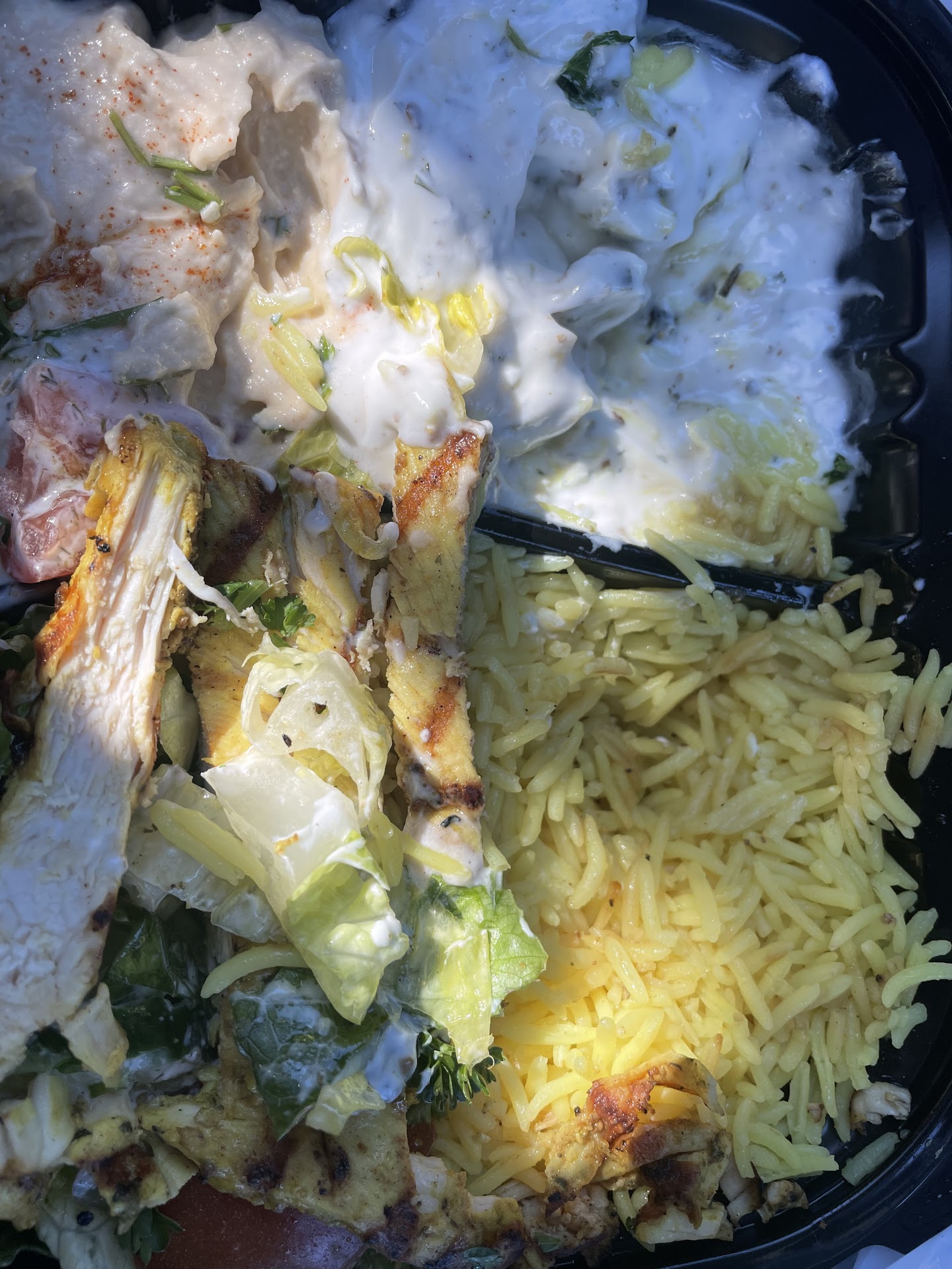 I ordered the chicken platter, which was visually pleasing and nicely presented. The chicken was flavorful and well-cooked, and the rice complemented it perfectlyâdefinitely a highlight of the meal. The hummus in the platter was also good, adding a nice creamy texture that rounded out the dish. However, I was a bit disappointed with the tzatziki sauce. For a place that advertises it prominently, it didnât quite meet expectations, earning a 2 out of 5 from me.