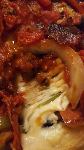 The pizza is usually really good from Rosatis, but I'd describe it differently here. It's always eaither well done or over cooked, sometimes both😒. [Last night for instance our pizza was well done on the crust but the dough in the middle of the pizza wasn't cooked all the way].